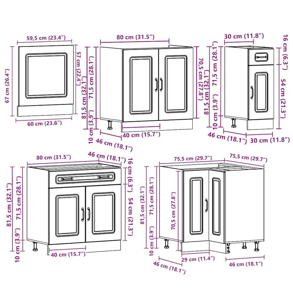 Ta 11-delni komplet kuhinjskih omaric z elegantnim dizajnom bo optimiziral prostor v vaši kuhinji in nudil veliko prostora za shranjevanje vaših osebnih stvari!