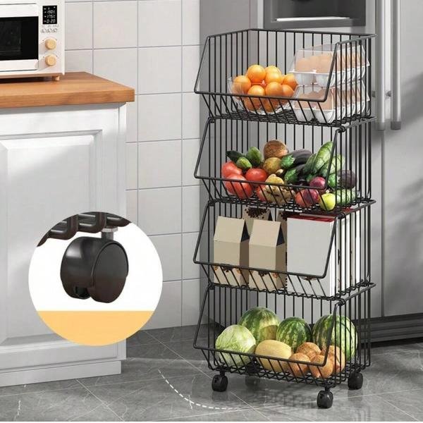 Preoblikujte svojo kuhinjo v organizirano zavetje z našim servirnim vozičkom s tremi košarami. Ta voziček je odličen za shranjevanje zelenjave, sadja, suhomesnatih izdelkov in še več, saj vam pomaga, da imate vse na dosegu roke.