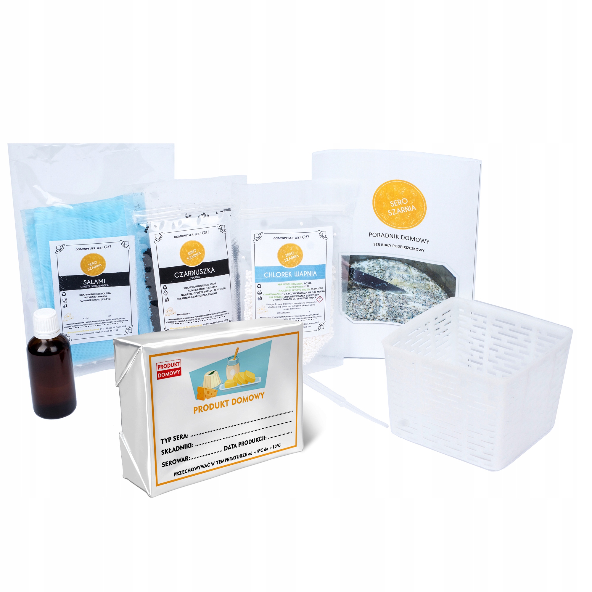 Komplet za izdelavo sira vsebuje vsa potrebna orodja za pripravo domačega sira – tako belega kot rumenega. Potrebujete le osnovno kuhinjsko opremo in mleko iz lokalne trgovine. V manj kot eni uri bo vaš dom napolnil vonj aromatičnega domačega sira.