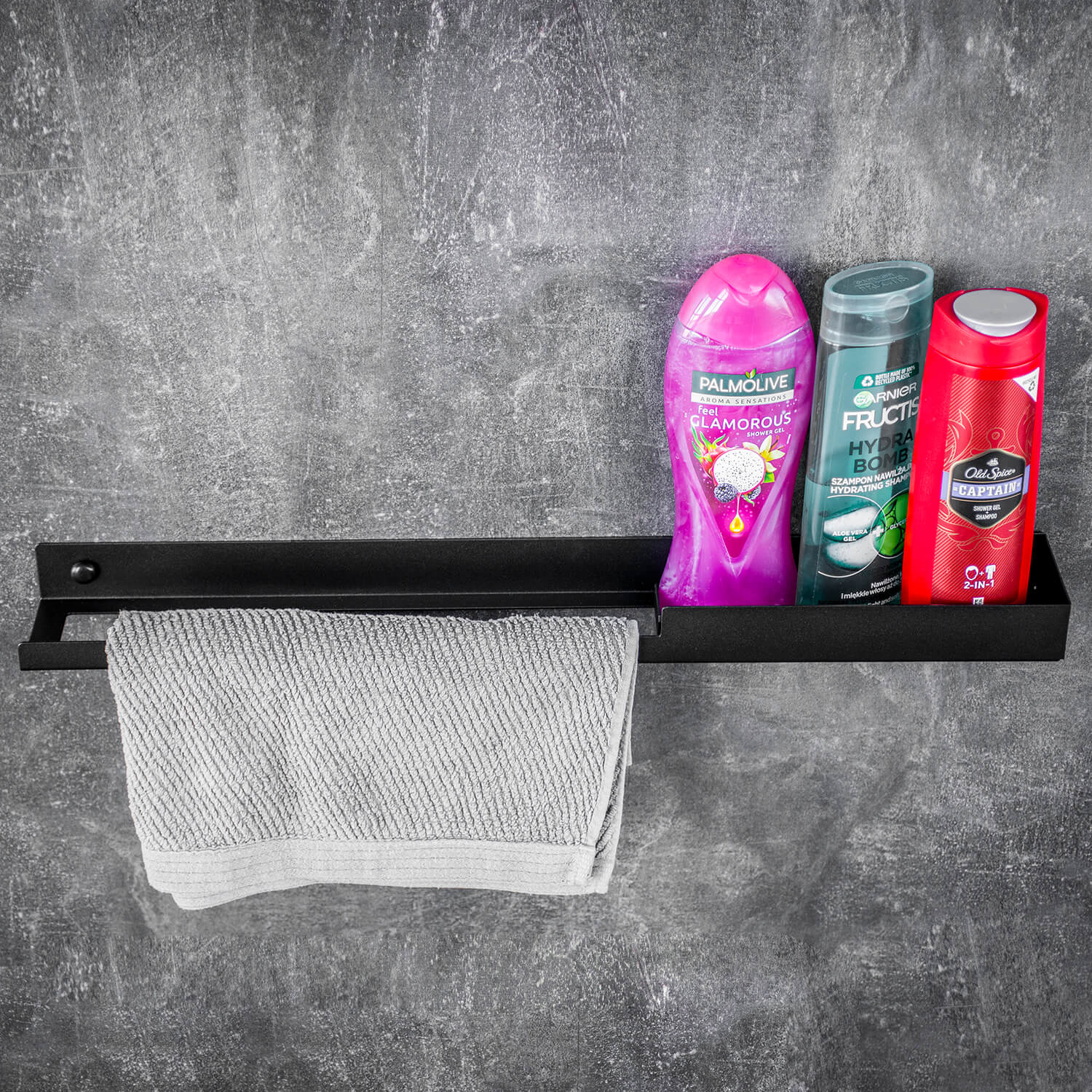 ⭐️ČRNA KOPALNIŠKA POLICA ZA TUŠIRANJE, VISEČE STOJALO ZA BRISAČE IN KOZMETIKO⭐️