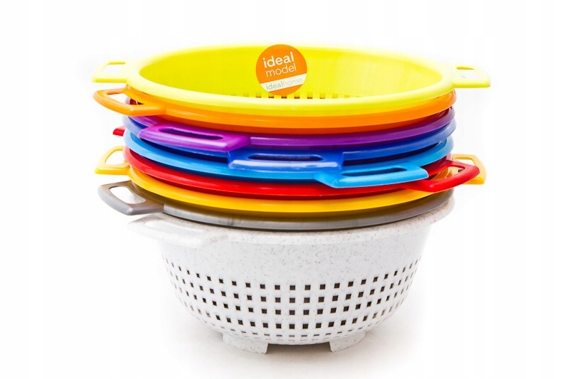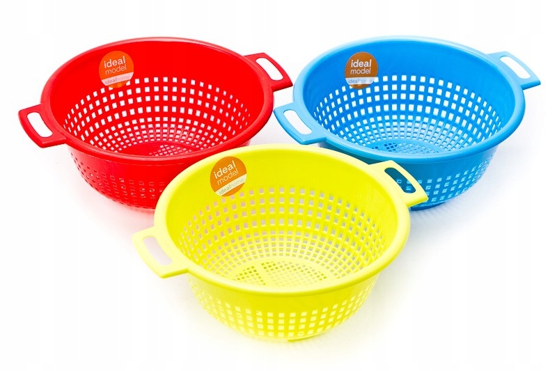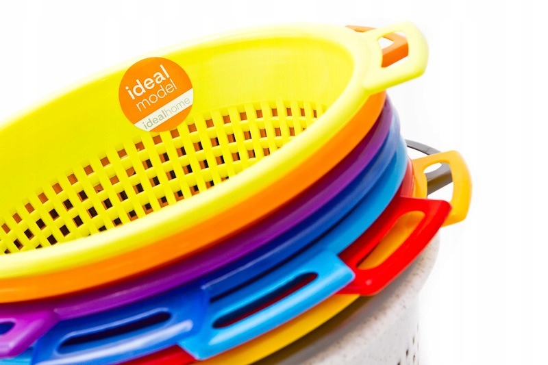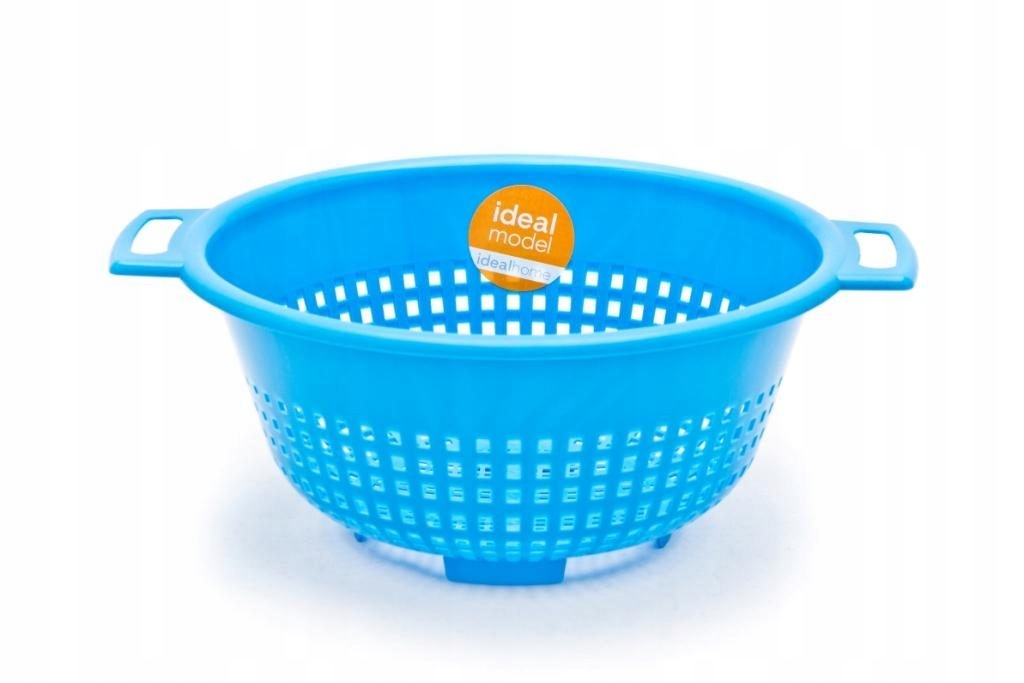 Stoječe cedilo iz plastike. Podstavek ima majhne luknjice in tri noge visoke 1 cm.