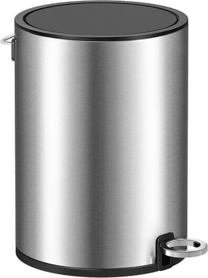 PRIHRANEK PROSTORA IN SLOG: Kompaktna oblika, kombinacija srebrne in črne barve – to 3-litrsko kozmetično vedro je popoln dodatek vaši kopalnici. Omogoča lažje odstranjevanje vsakodnevnih odpadkov (npr. uporabljenih kozmetičnih robčkov) in se odlično prilega drugemu kopalniškemu pohištvu Softclose pokrov Kopalniški koš za smeti je opremljen z amortizerjem, zaradi katerega se pokrov ne upogne nenadoma in se zapre nežno, počasi in tiho Zunanja jeklena posoda: Zunanja posoda majhne posode je izdelana iz jekla, je trpežna in dimenzijsko stabilna. Površina je prevlečena in enostavna za čiščenje. Odstranljivo notranje vedro: plastično notranje vedro je opremljeno z ročajem, tako da ga lahko enostavno odstranite iz kopalniškega smetnjaka, da odvržete smeti Pedal in odpirač za vrečke za smeti: samo pritisnite na pedal, da odprete pokrov koša v kopalnici – prostoročno, udobno in higiensko. Zahvaljujoč luknji v notranjem vedru lahko pritrdite rob vrečke za smeti Podrobnosti izdelka: Črna barva Material: zunanja posoda iz jekla, pokrov iz ABS plastike, notranje vedro iz PP Velikost (s pedalom): 23,8 × 18,8 × 25, 7 (D x Š x V) Velikost (brez pedala): 18,8 × 18,8 × 25,7 cm (D x Š x V) Skupna višina (z odprtim pokrovom): 41,5 cm Teža: 0,8 kg