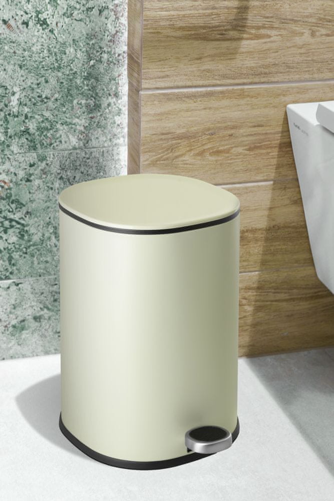 Koš za odpadke AWD INTERIOR 2011 s prostornino 5 litrov je elegantna in praktična rešitev, primerna za različne prostore – od kopalnic in kuhinj do pisarn in hotelskih sob. Izdelan je iz jekla, pobarvanega v nežni, zelo svetlo olivni barvi, in združuje visoko vzdržljivost z modernim dizajnom, ki se dopolnjuje tako z minimalističnimi kot klasičnimi notranjostmi. Koš ima sistem mehkega zapiranja pokrova, ki zagotavlja tiho in udobno uporabo. Higiensko upravljanje s pedalom omogoča priročno uporabo, ne da bi se morali pokrova dotikati z rokami. Plastična notranja posoda omogoča enostavno praznjenje in čiščenje, dodaten ročaj na zadnji strani pa izjemno enostavno prenašanje koša. Praktična lastnost je možnost nastavitve pokrova v navpični položaj, kar olajša praznjenje koša. Zaklepljiv pokrov izboljša estetiko okolice – odpadki ostanejo nevidni, neprijetne vonjave pa se zadržijo. Koš združuje funkcionalnost z elegantnim videzom, zaradi česar je idealna izbira za moderna stanovanja, pisarne in poslovne prostore.