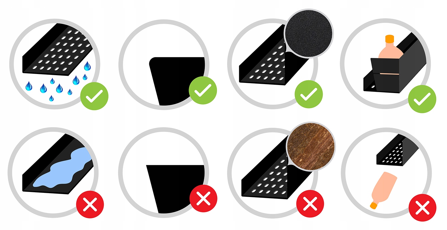 • VARNOST: Gladek rob preprečuje poškodbe. Zasnova preprečuje, da bi kozmetika padala s police.