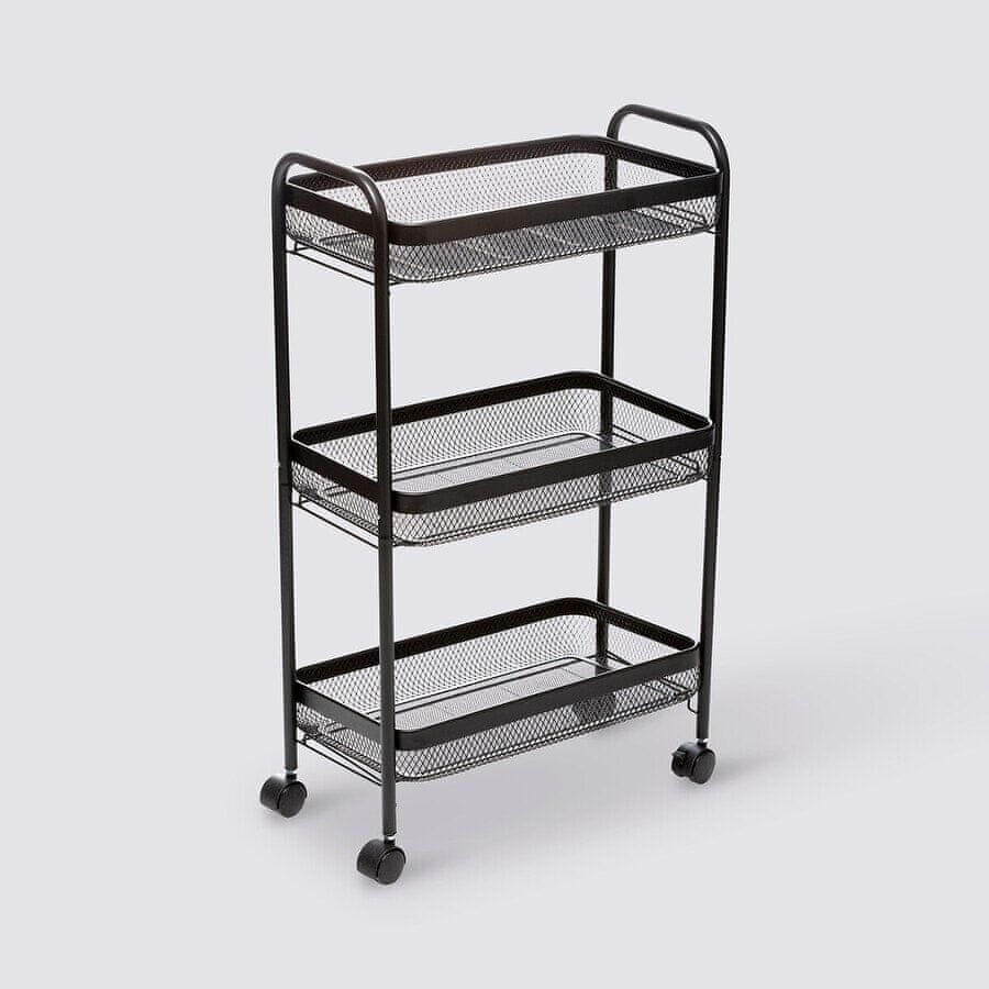 Mayaj črn kovinski voziček s 3 košarami Celoten opis