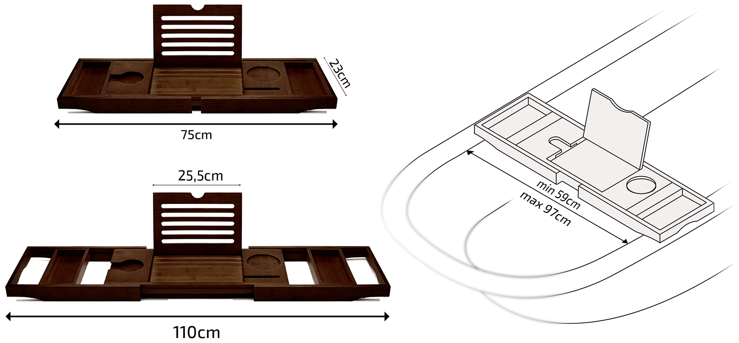primerna za kadi širine od 75 do 110 cm . Preprosto jo raztegnite in prilagodite svojim potrebam – orodje ali montaža nista potrebna. Čeprav ponuja veliko prostora za shranjevanje,