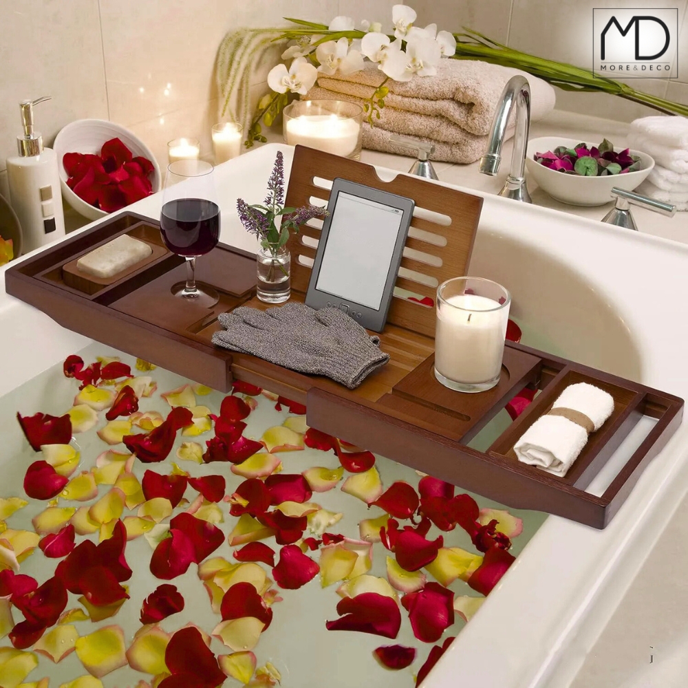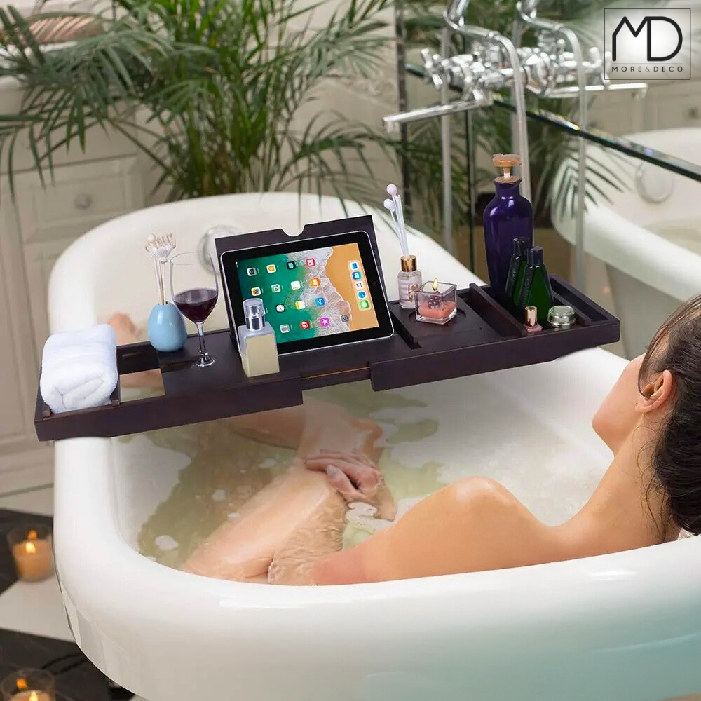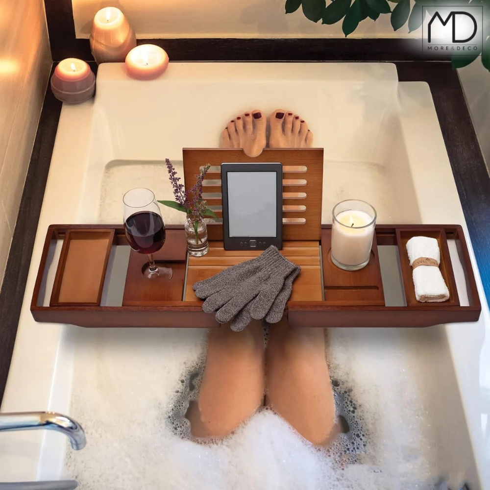 je popolna rešitev za tiste, ki uživajo v kadi, berejo ali gledajo TV-serije – brez neprijetnega zvijanja vratu ali utrujenih rok. ✨PROSTOR ZA SVEČE, SKODELICO ALI VISKI – USTVARITE SVOJE UZRAŠČJE
