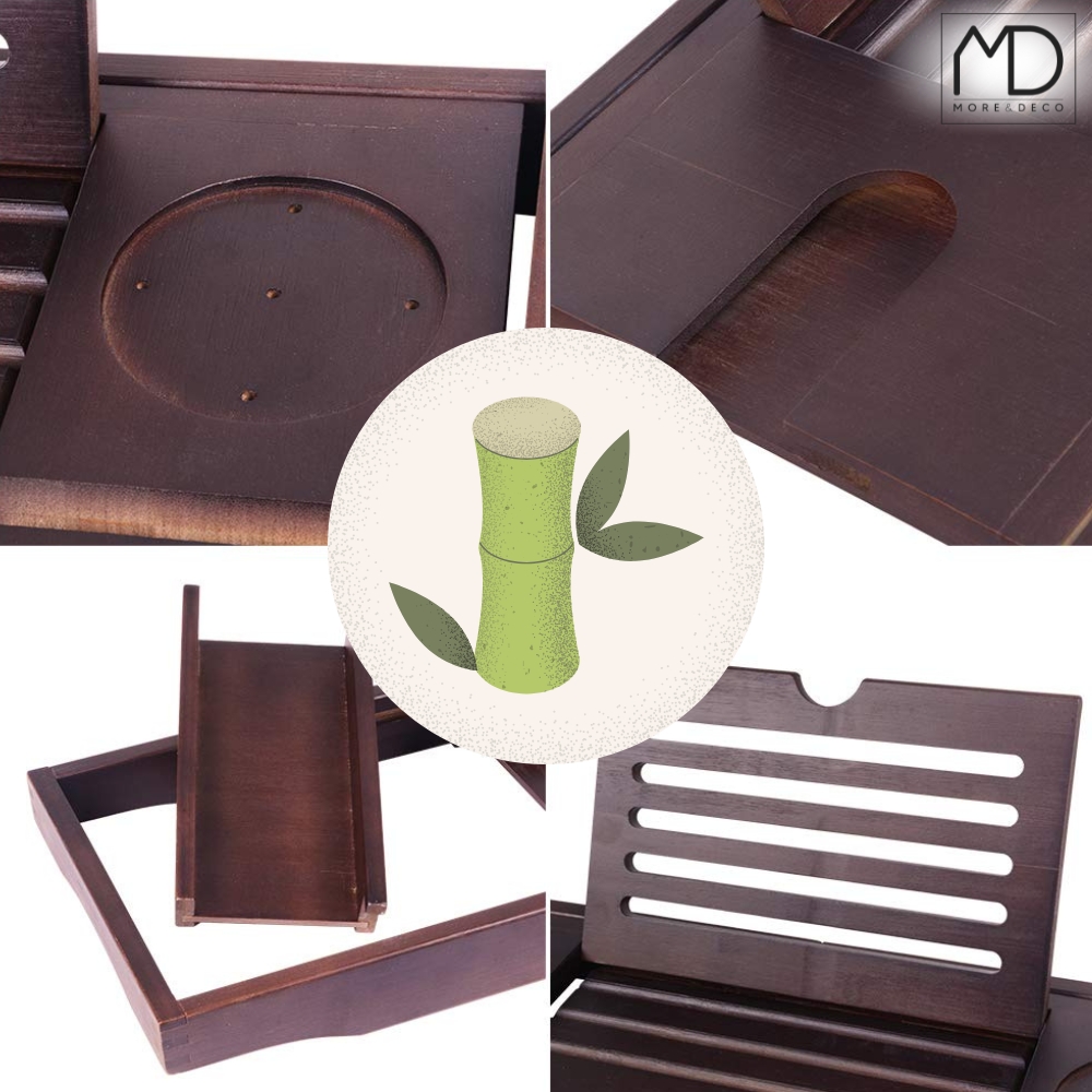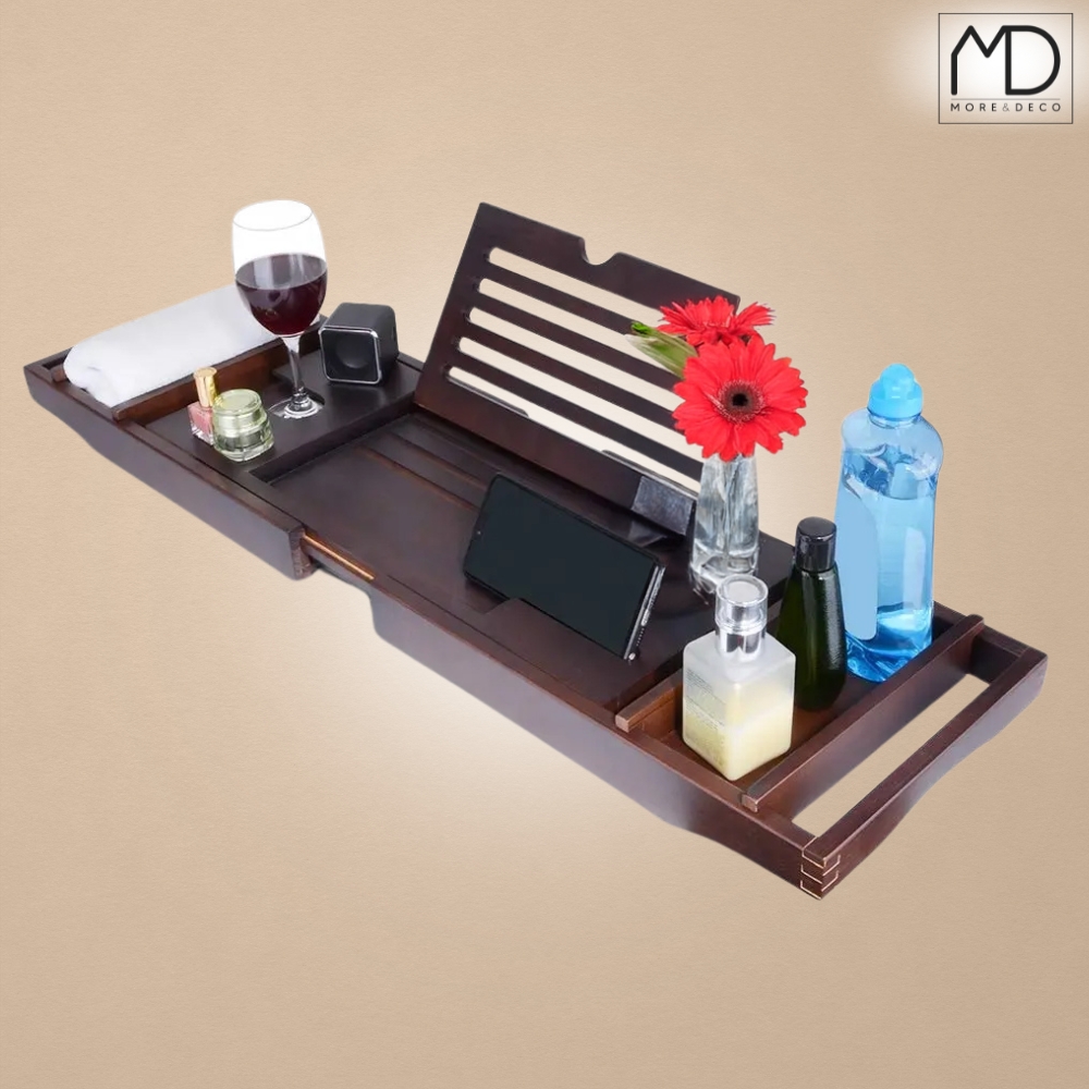 ⚫️ Bambusova polica za kad je praktičen in eleganten dodatek , ki bo vsako kopel spremenil v trenutek blažene sprostitve.