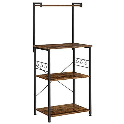 shumee Stojalo za kuhinjsko stojalo 3-nadstropno stojalo s 6 kavlji v obliki črke S Industrijska kuhinja Oblikovanje mikrovalovne pečice Razlogi za kuhanje Začimbe Lonci in ponve Vintage Rjava Črna KKS023B01