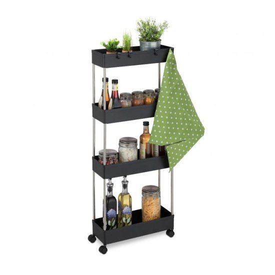 Povečajte prostor v vaši kuhinji in kopalnici s tem vsestranskim vozičkom za shranjevanje na kolesih, zasnovanim za ozke niše. Z njegovo tanko, mobilno zasnovo enostavno organizirajte pripomočke in dodatke.