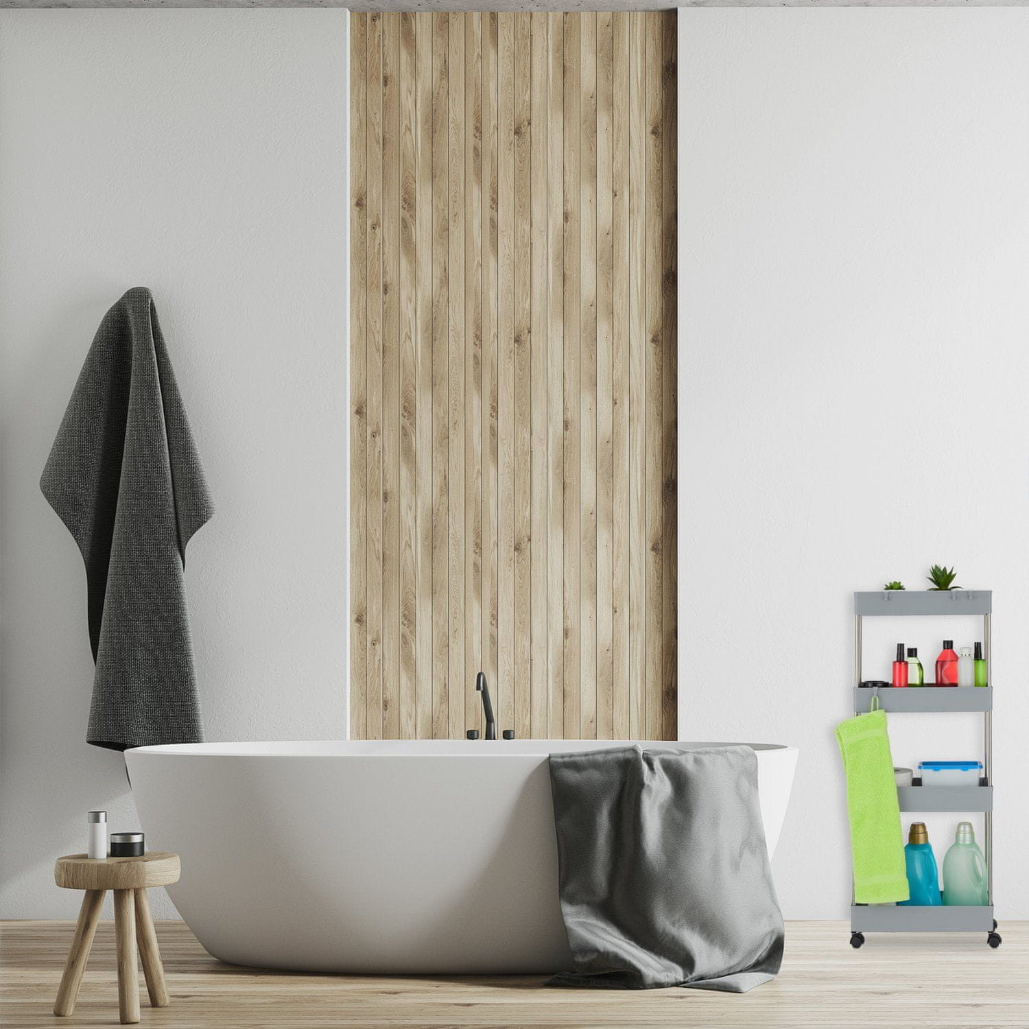 Voziček za shranjevanje z visoko nišo optimizira prostor v kuhinjah in kopalnicah ter ponuja praktično shranjevanje tudi v ozkih kotih. Njegova mobilna zasnova zagotavlja enostaven dostop do osnovnih stvari.