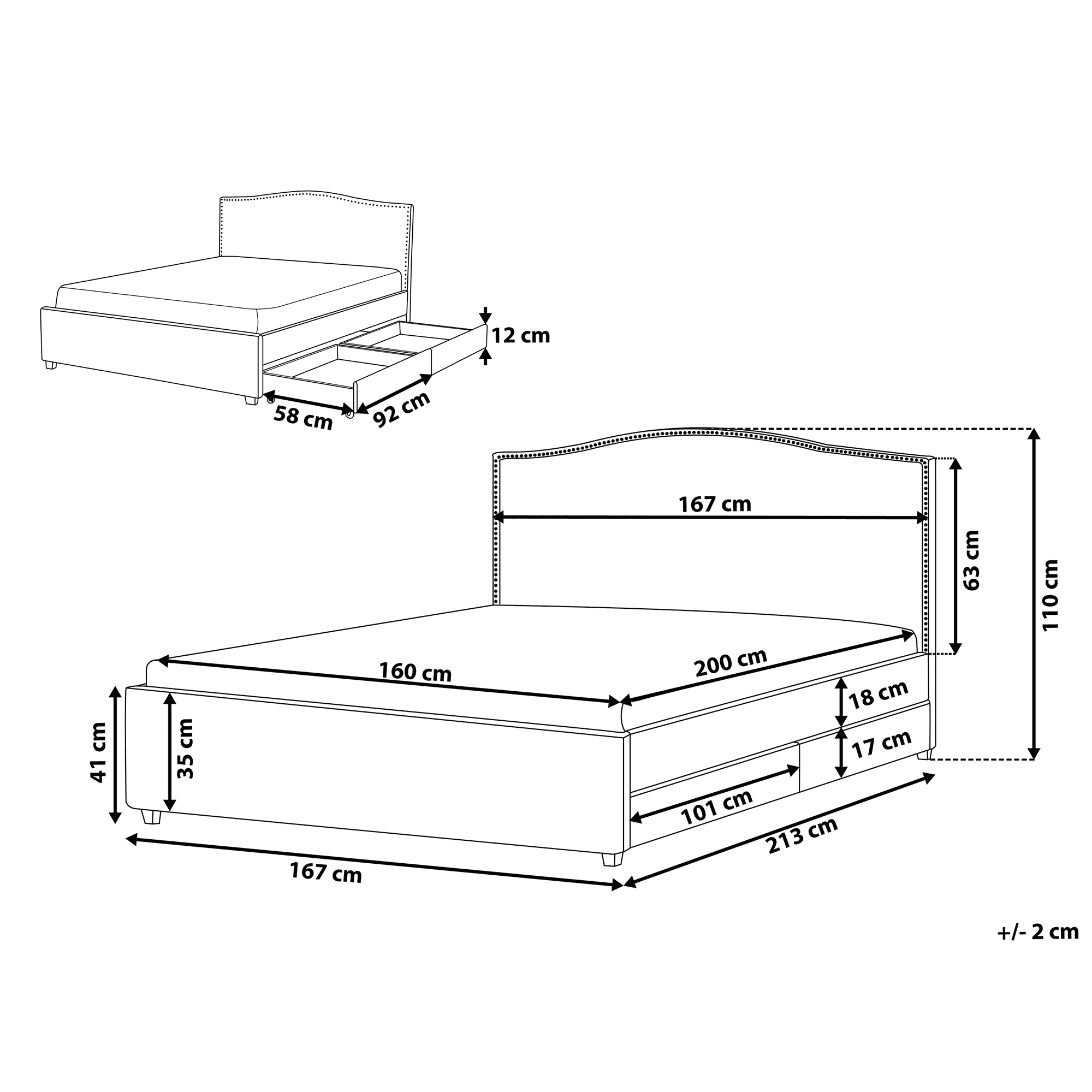 S to elegantno oblazinjeno posteljo dodajte svojemu interierju nežen romantičen pridih. Njegova preprosta, a elegantna zasnova izboljša videz vsakega sodobnega ali starinskega glavnega apartmaja. Visoko učinkujoče vzglavje s tankim okrasnim vzorcem in okvir sta obdelana z gladko sivo tkanino. Priložena plošča LED se odlično obnese kot nočna luč in ponuja ambientalno svetlobo v eni od 16 razpoložljivih barv. Postelja ima predal za shranjevanje