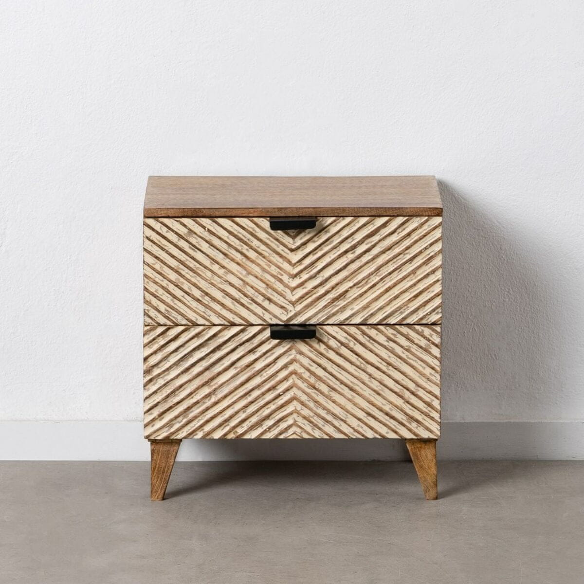 BigBuy Nočna omarica 50 x 33 x 50 cm Naravna bela Mango les