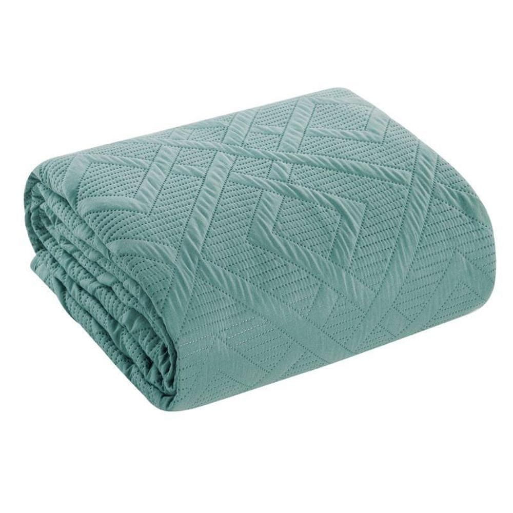 Enobarvno posteljno pregrinjalo, izdelano v tehniki vročega stiskanja, širina: 230 cm, dolžina: 260 cm, barva: turkizna, teža: 80+120+70 GSM, sestava: 100 % poliester