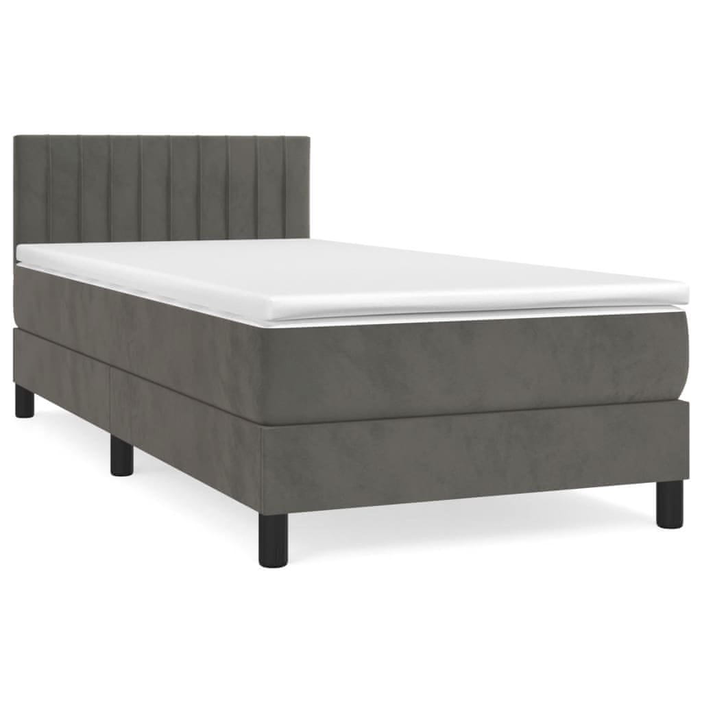 Greatstore Box spring postelja z vzmetnico temno siv 90x190 cm žamet