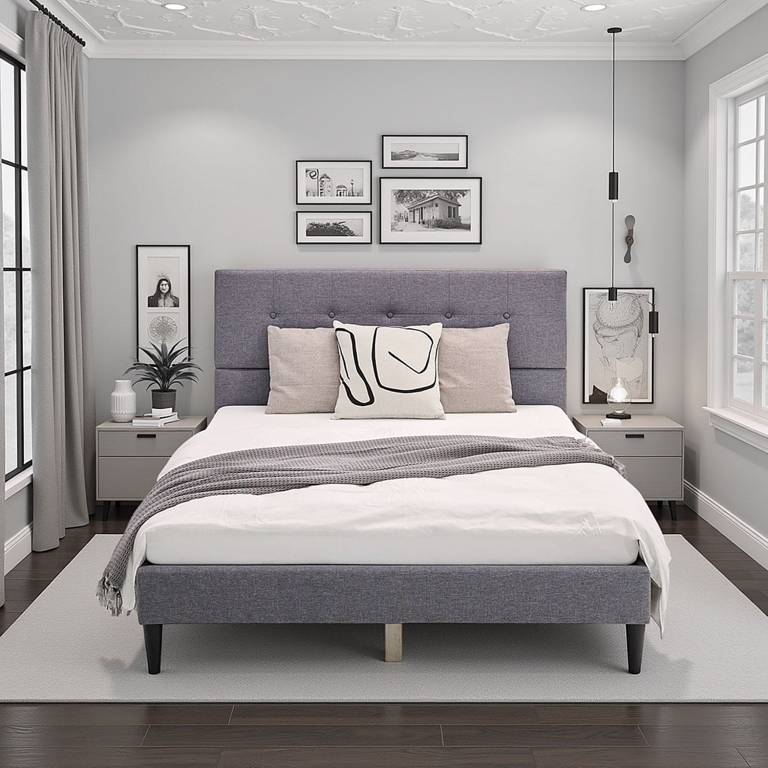 Ta oblazinjena zakonska postelja ponuja brezčasen dizajn in udobno oporo za miren spanec. Priložena vzmetnica in letveno dno zagotavljata stabilnost in udobje, kar posteljo naredi za stilski in praktičen dodatek vaši spalnici. Vsako noč uživajte v prijetnem in vabljivem ambientu. Celoten opis