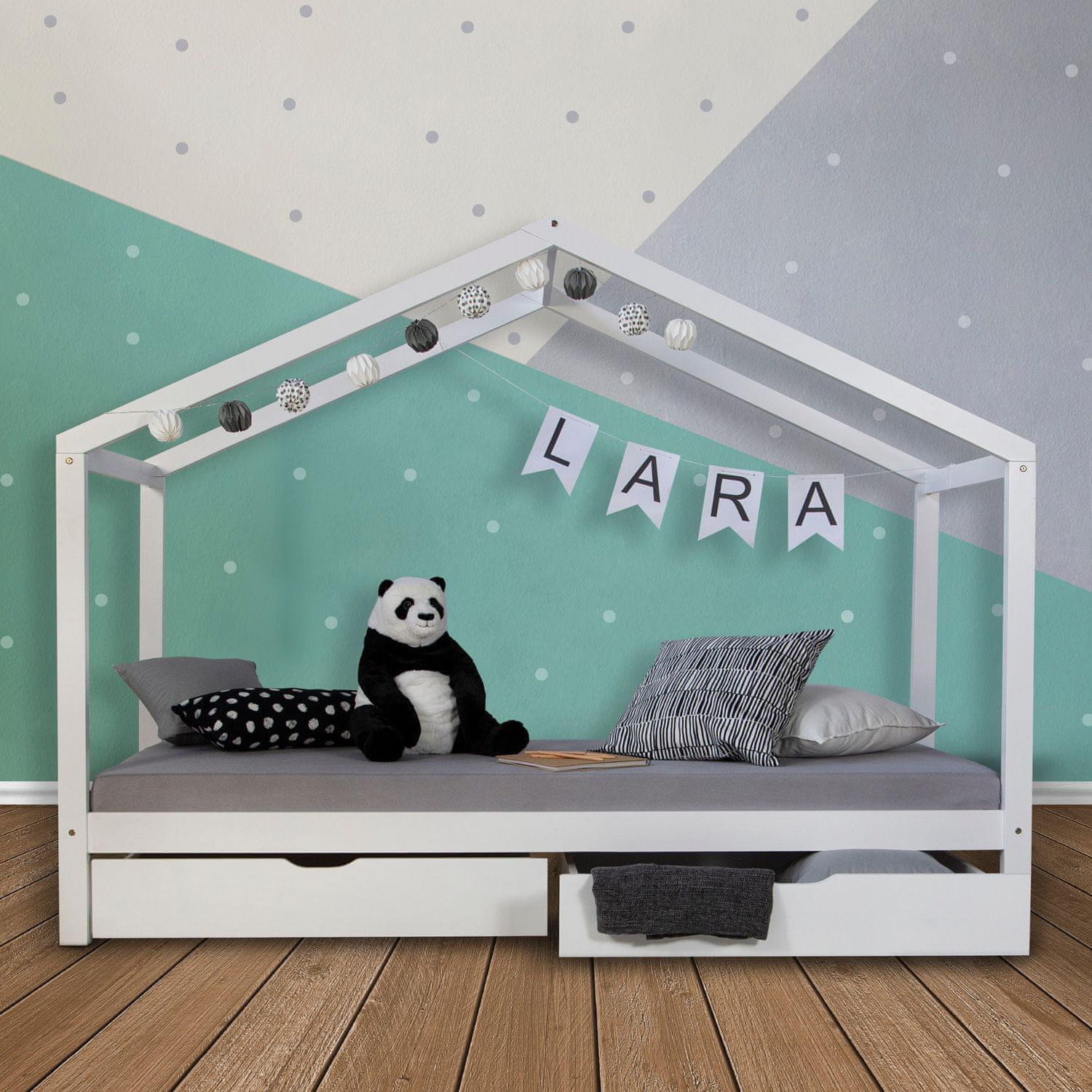 • Odlična posteljica v obliki hiše 90 × 200 cm, bela barva