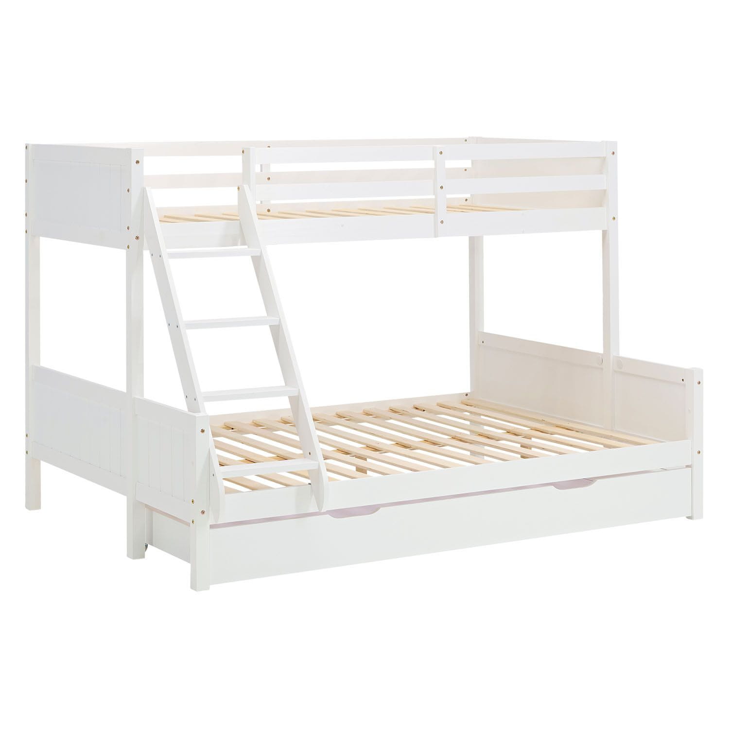 Ustvarite harmonično in funkcionalno spalno okolje za vaše otroke s to moderno pogradno posteljo, zasnovano za družine z več otroki. Postelja ima dve prostorni spalni površini in praktičen izvlečni predal za shranjevanje, kar zagotavlja udobje in urejenost v vsaki otroški sobi. Vsestranska lestev in elegantna bela barva poskrbita za stilsko in prilagodljivo dopolnitev vašega doma.