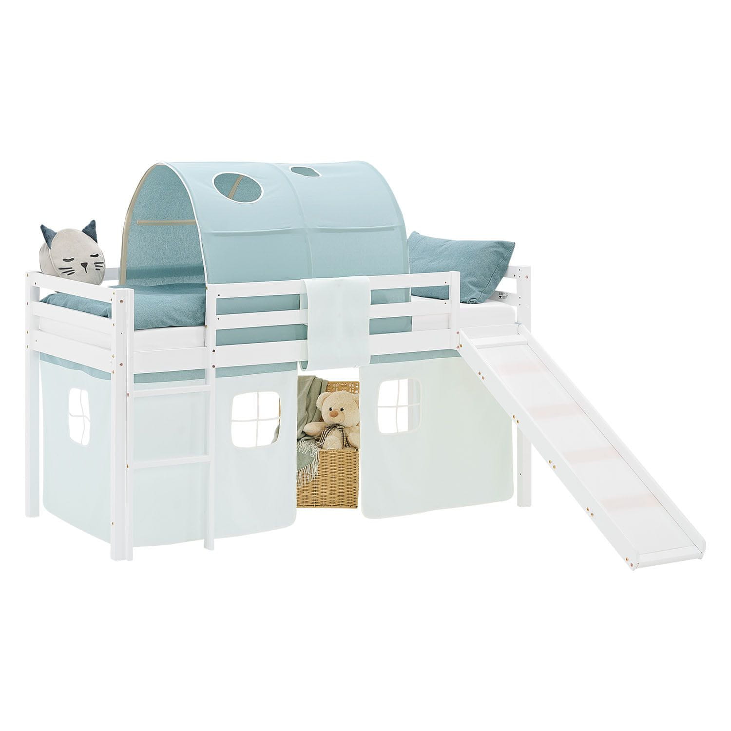 Ta pogradni komplet je zasnovan za ustvarjanje funkcionalnega in prijetnega prostora v vsaki otroški sobi. Vključuje pograd s toboganom, prijeten tunel, zaveso v mint zeleni barvi, ujemajoče se letveno dno in udobno vzmetnico, kar predstavlja popolno rešitev za spanje in igro. Premišljena zasnova zagotavlja varnost, vsestranskost in slog, zaradi česar je idealen za vsakdanje družinsko življenje.