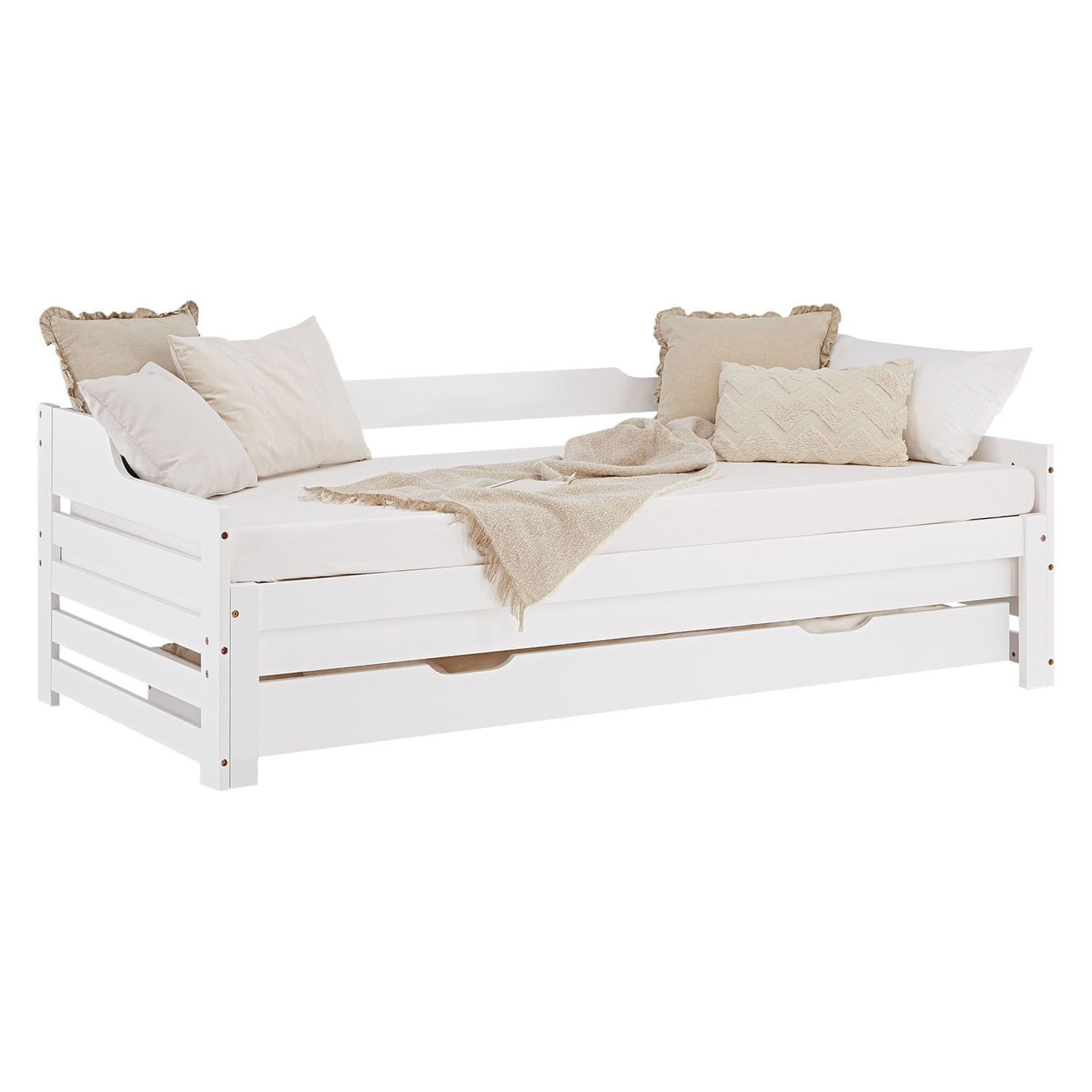 • Leseno posteljno ogrodje 90×200 cm z dodatnim ležiščem, belo