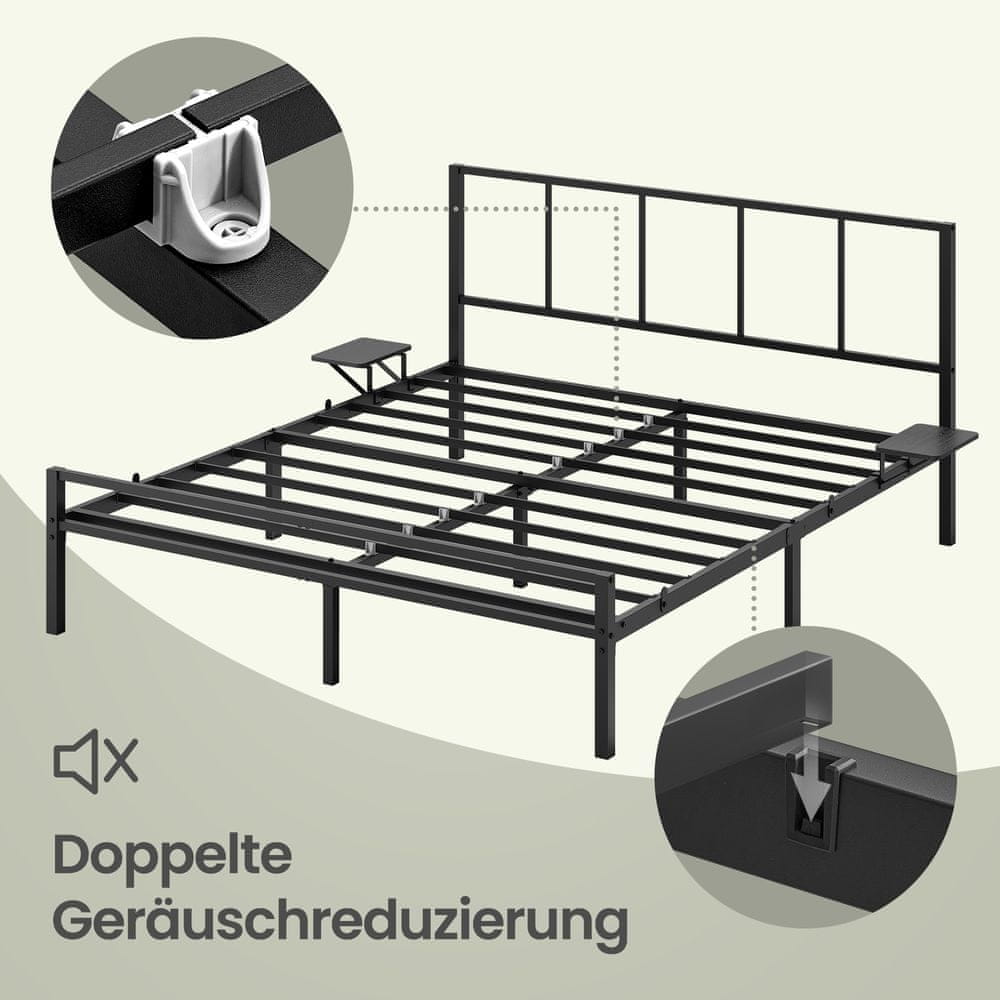 Ta sodoben kovinski okvir postelje je zasnovan tako da zagotavlja udobje in funkcionalnost zaradi česar je idealna izbira za spalnice ali sobe za goste. Ponaša se z robustno konstrukcijo in sodobnim videzom ki nudi zanesljivo podporo in dovolj prostora za miren spanec. Vgrajene police za shranjevanje dodajajo praktično udobje in pomagajo ohranjati vaš spalni prostor urejen.