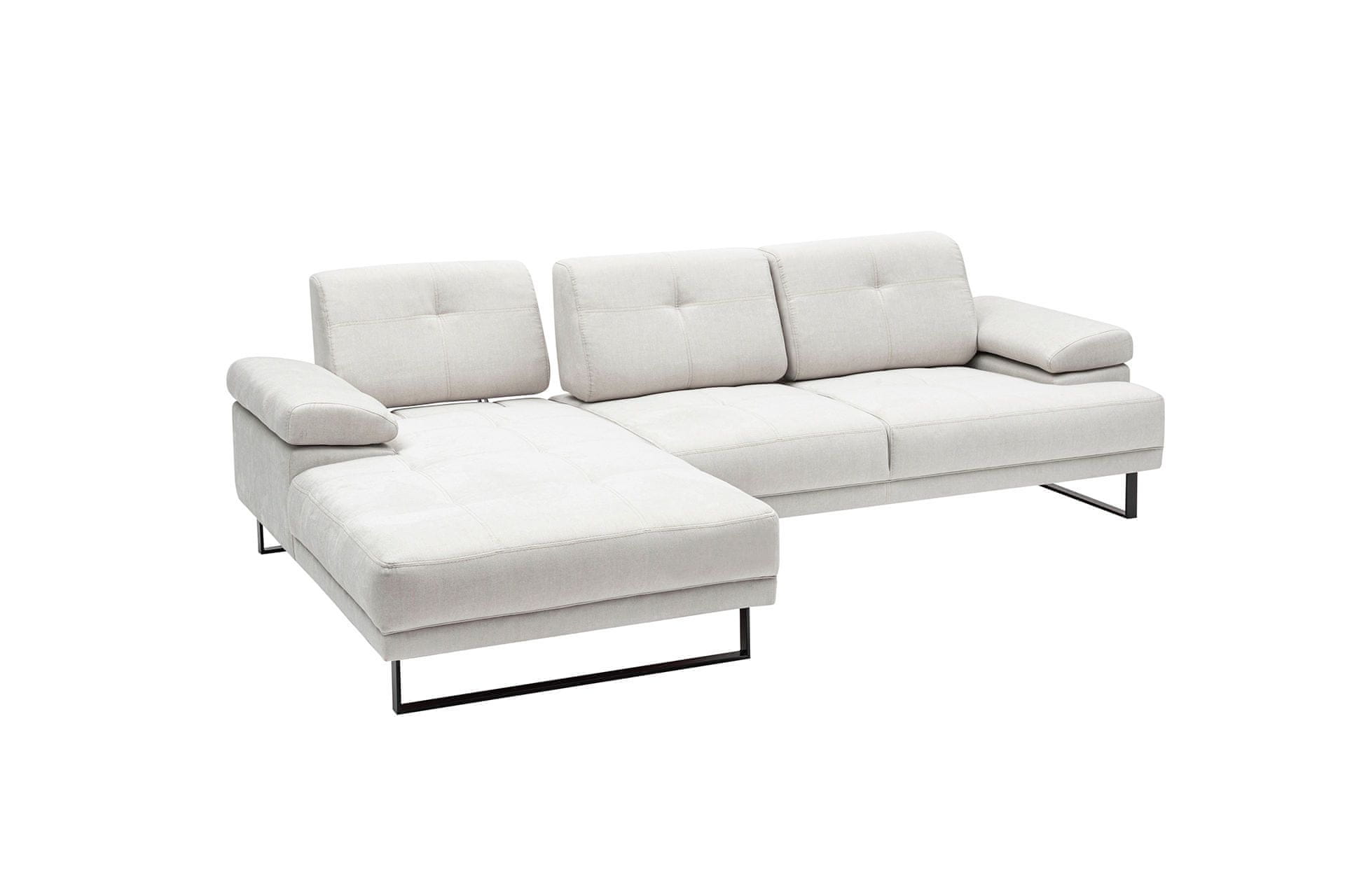 Okvir: BUKOV LES / IVERNA PLOŠČA Tkanina: 100 % POLYESTER Dolžina: 174×314 cm Višina: 83 cm Višina sedeža: 45 cm Pena: 28 DNS mehka siva pena / 24 DNS perje Vzmet na sredini za sedenje 8 DNS mehka siva pena 24 DNS perja za hrbet Premično naslonjalo za hrbet Nastavljiv mehanizem za roke Vzglavniki niso vključeni Fiksni hrbet / blazina za sedenje Tkanina, ki se lahko suho čisti Noge: Kovinske noge: mat črne barve Višina nog: 16 cm Število paketov: 3 218 × 92 × 70 cm / 48 kg (1 kos) 100 × 178 × 70 cm / 25 kg (1 kos) 80 × 25 × 15 cm / 5 kg (1 kos)
