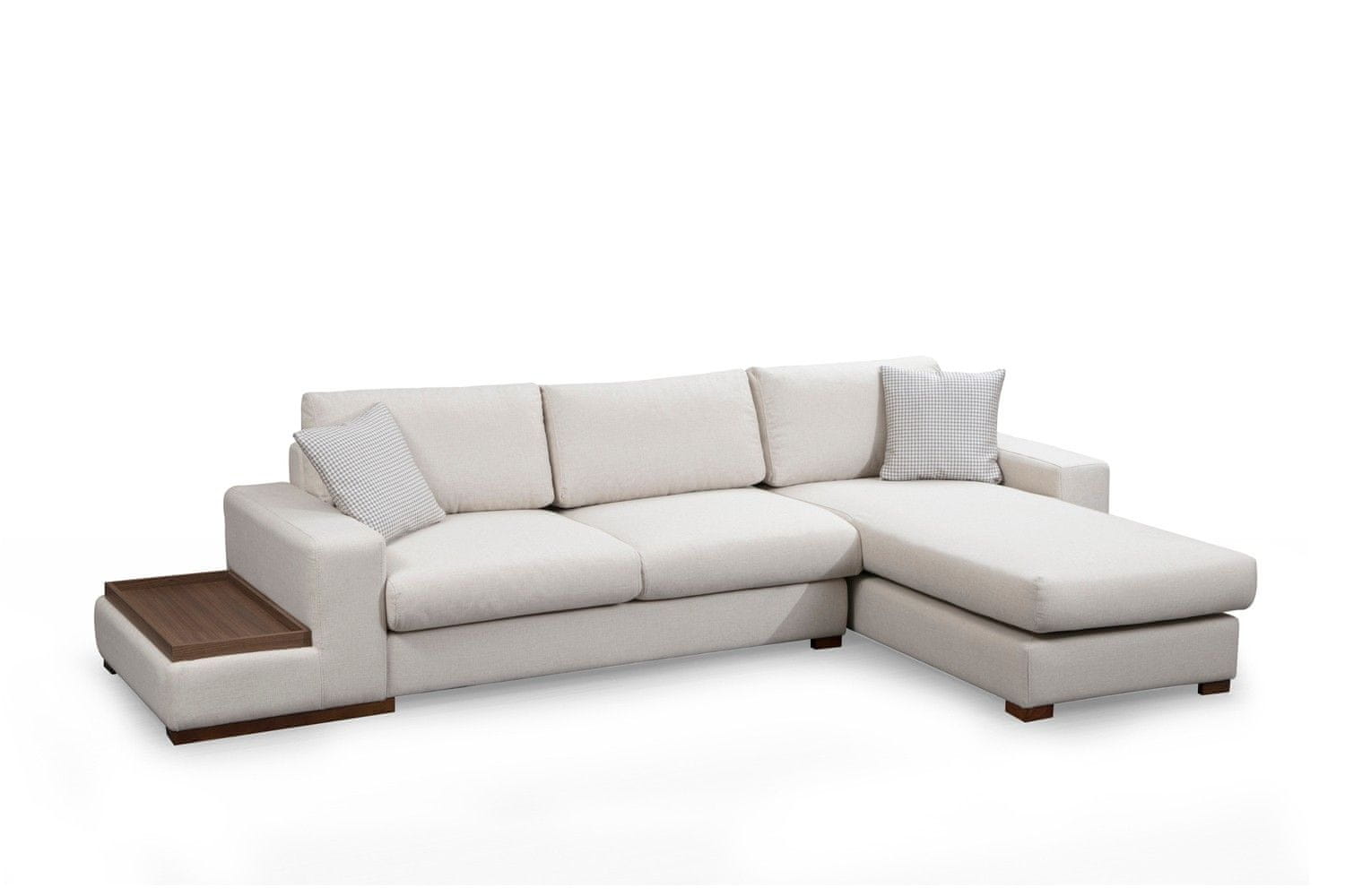Okvir: BUKOV LES / IVERNA PLOŠČA Tkanina: 100 % POLYESTER Dolžina: 312 cm x 194 cm Širina: 95 cm Višina: 85 cm Velikost mize: Dolžina: 40 Širina: 89 cm Višina: 29 cm Pena: 18 DNS trda siva pena / vzmet / 24 DNS perje za sedenje 60% rezana pena / 40% silikonska pena za hrbet Blazina: 60% rezana pena / 40% silikonska pena Velikost: 45 cm x 45 cm (2 kosa) Prenosna blazina za sedenje in hrbet Tkanina, ki se lahko suho čisti Noge: Noge iz orehovega lesa Višina pene: 26 cm Število paketov: 4 (1 kos): 103 × 30 × 61 cm / 5 kg / (1 kos) 147 × 105 × 85 cm / 30 kg / (1 kos) 85 × 200 × 85 cm / 30 kg / (1 kos) 104 × 82 × 57 cm / 20 kg / (1 kos)
