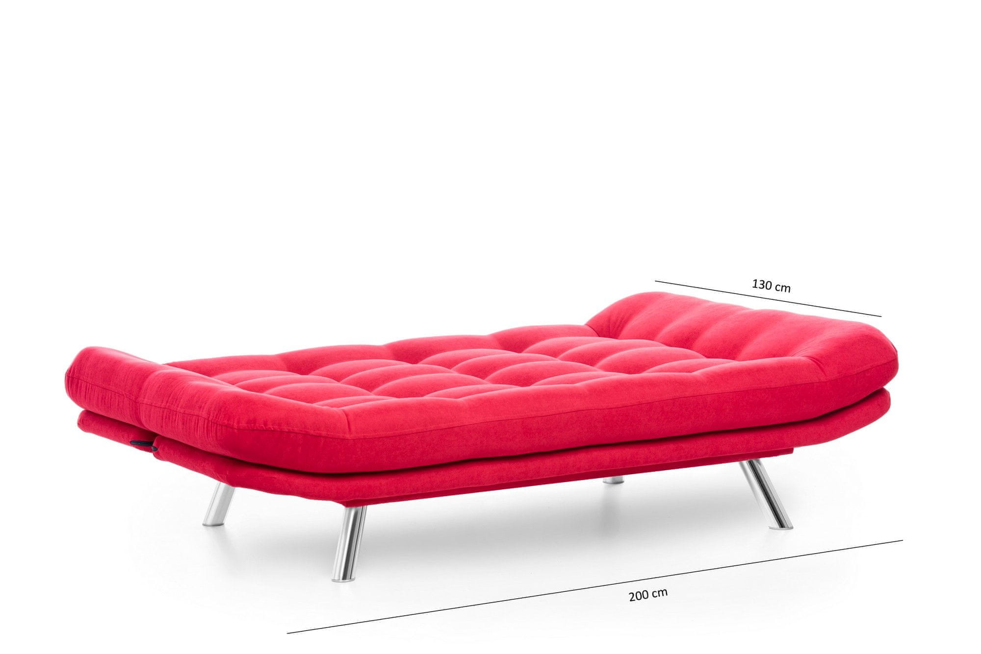 Okvir: 100 % KOVINA Tkanina: 100% MEHKA TKANINA Širina: 200 cm Višina: 95 cm Globina: 105 cm Globina sedeža: 65 cm Širina sedeža: 190 cm Višina sedeža: 42 cm Velikost postelje: Širina: 200 cm Globina: 130 cm Blazina (2 kosa) 400 gr-m² polnilo iz silikonskih vlaken Enostavno čiščenje tkanine Največja nosilnost: 300 kg Število paketov: 1