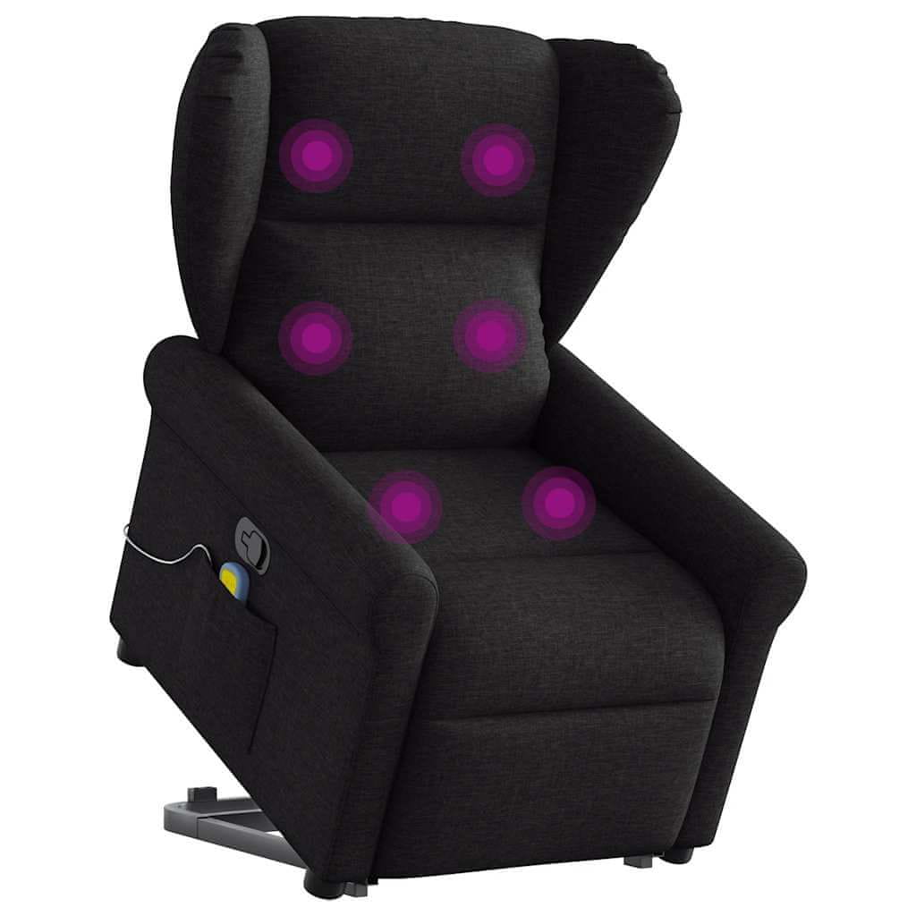 Vidaxl Masažni naslanjač s funkcijo vstajanja črno blago