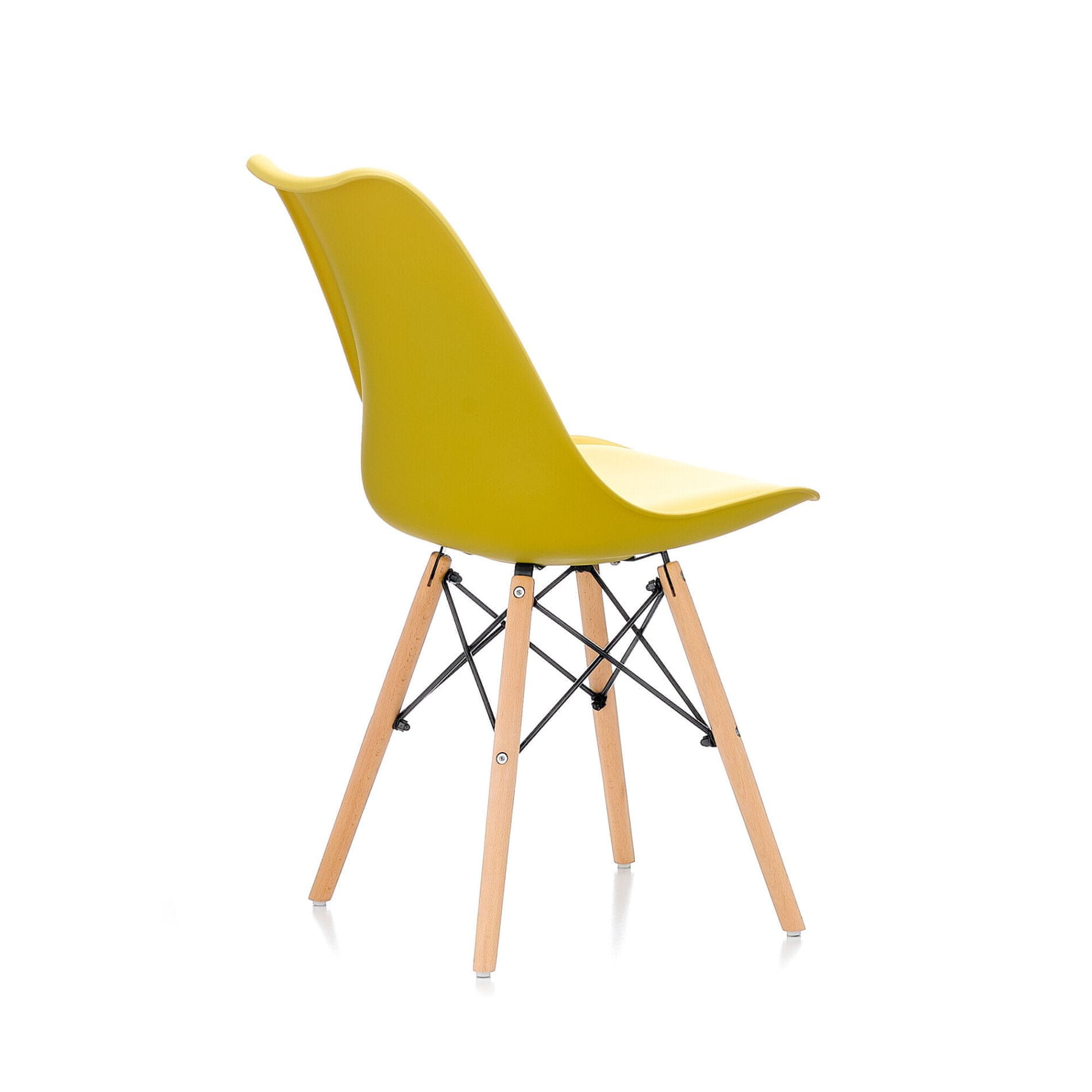 Stol je izdelan iz kakovostnega in trpežnega polipropilena s blazino v prevleki iz umetnega usnja v kombinaciji z nogami iz bukovega lesa.