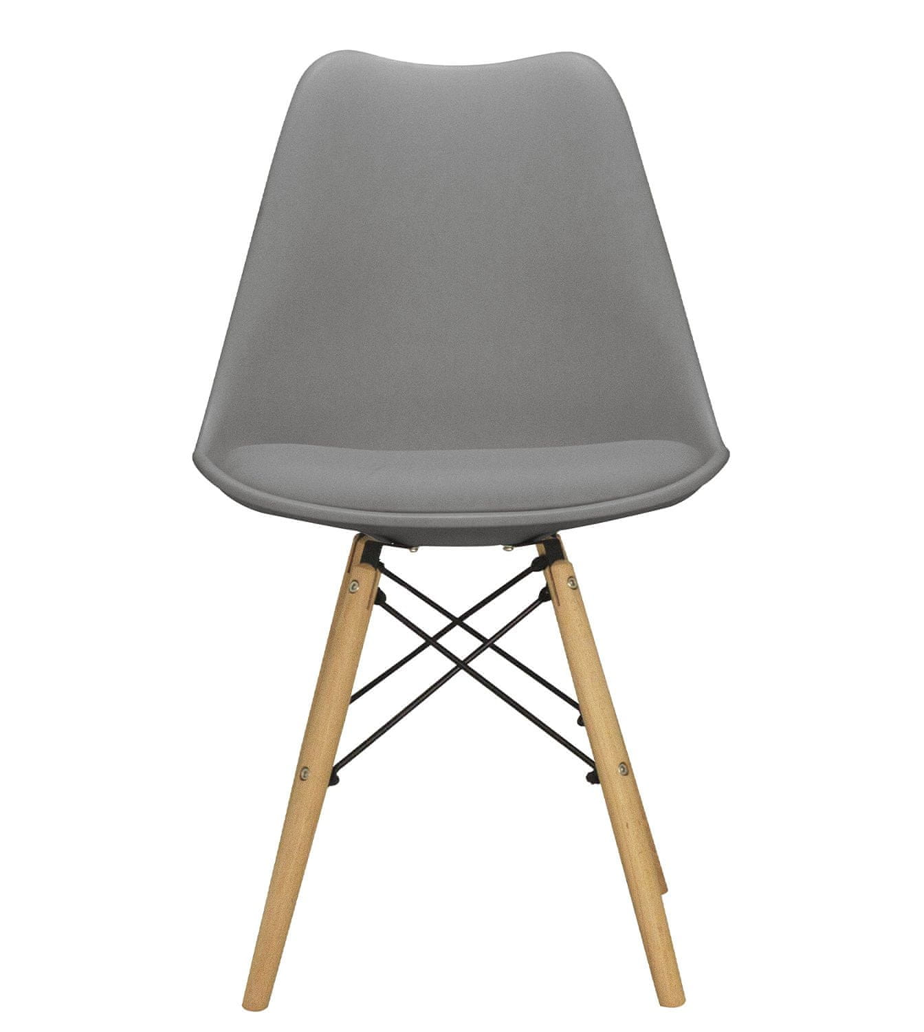 Stol je izdelan iz kakovostnega in trpežnega polipropilena s blazino v prevleki iz umetnega usnja v kombinaciji z nogami iz bukovega lesa.