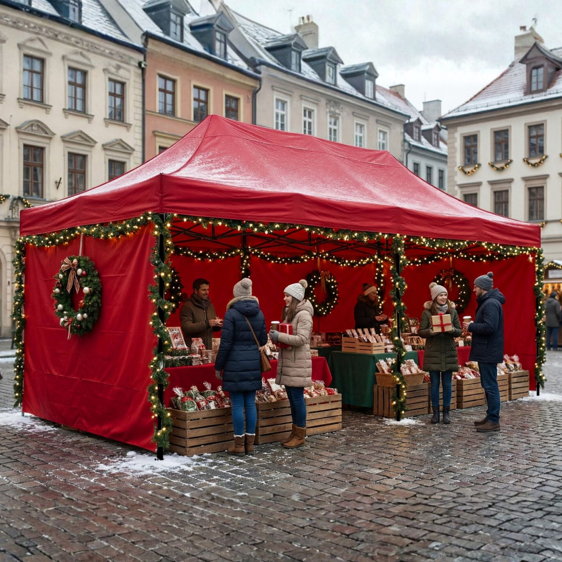 V tem vremenu je priporočljivo vsaj odstraniti stranske stene, vendar je idealno, da celoten stoj zložite in shranite.Specifikacije prodajnega stojnice Aga 3×6m.