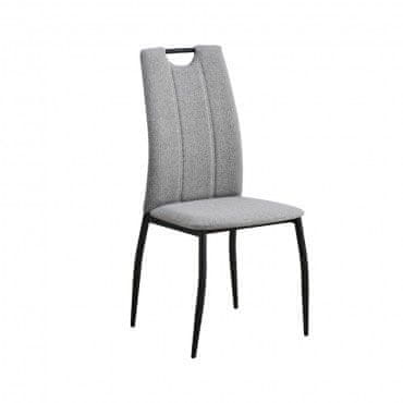 Preprost jedilni stol nudi veliko udobja saj ponuja eronomično naslonjalo za hrbet, zraven tega pa je se oblazinjen s kvalitetno tkanino, katera vas bo navdušila. Nogice stola so prašno lakirane v mat črno barvo, ki bolje zaščiti izdelek in narejene so iz kovinskih cevi, ki dajejo stabilnost stolu. Maksimalna obremenitev je 120 kg. Višina sedišča je 47 cm.