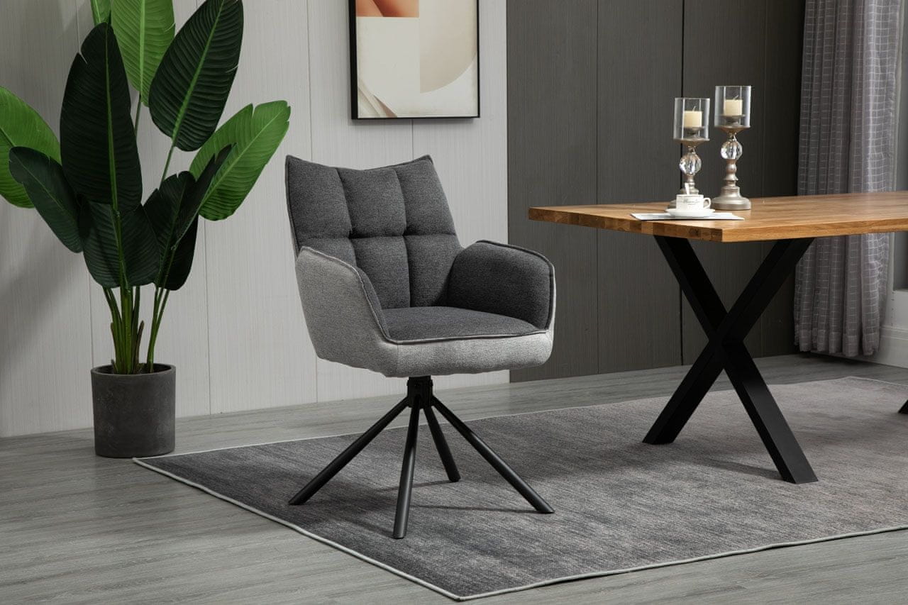 Jedilni stol RINGO 2 bo v vašo jedilnico prinesel izjemno udobje in moderni stil! Ta udoben stol je oblazinjen v moderno temno sivo tkanino in ima v sedišču kvalitetno žepkasto vzmetenje za maksimalno udobje pri sedenju. Prašno lakirano podnožje je kovinsko, stol se pa lahko tudi zavrti za. Celoten opis