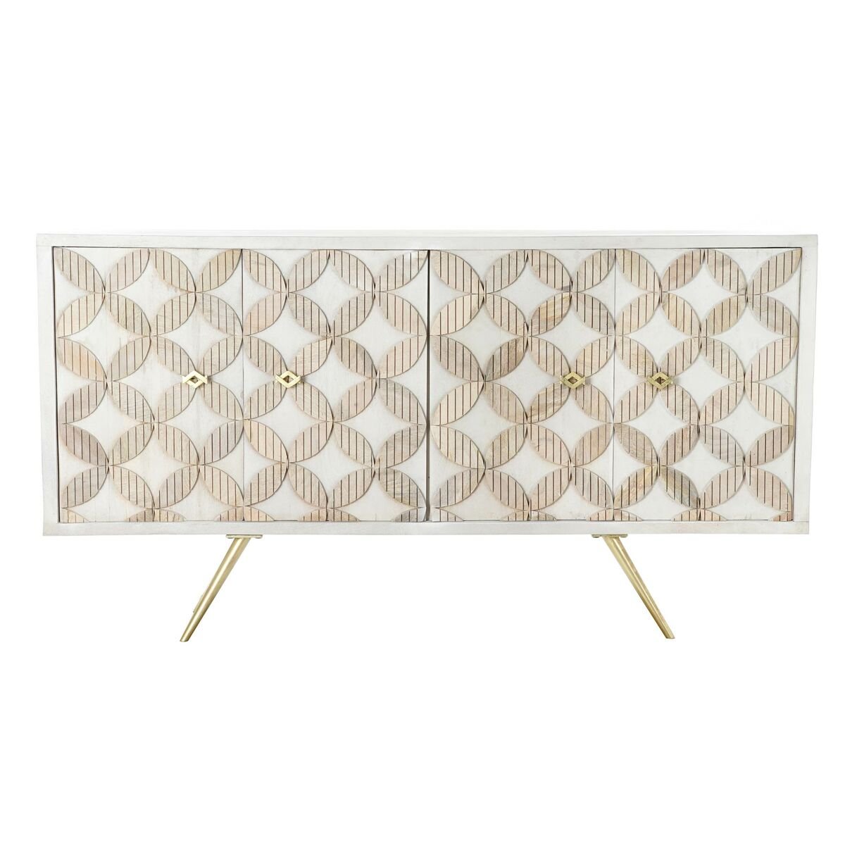 Če želite svojemu domu dodati pridih izvirnosti, vam bo to uspelo s kredenco DKD Home Decor Beige Golden White Brass Mango wood (155 × 43 × 84 cm).