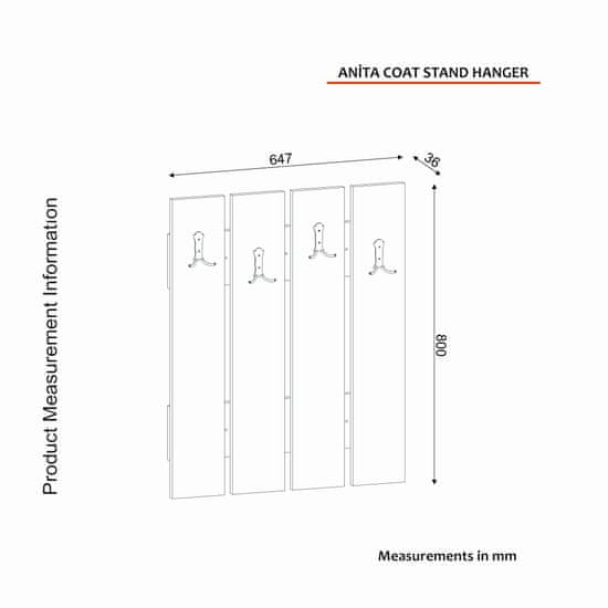 100 % MELAMINSKO PREVLEČENA IVERNA PLOŠČA Debelina: 18 mm Širina: 64,7 cm Višina: 80 cm Globina: 3,6 cm Viseči obešalnik za plašče Številne police Lahko se pritrdi na steno Število paketov: 1