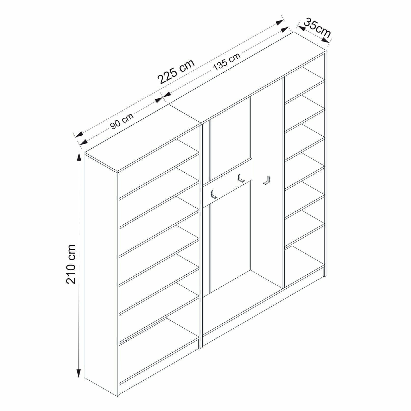 100-odstotno prevlečena plošča z delci, prevlečenimi z melaminom Debelina: 18 mm Širina: 225 cm Višina: 210 cm Globina: 35 cm