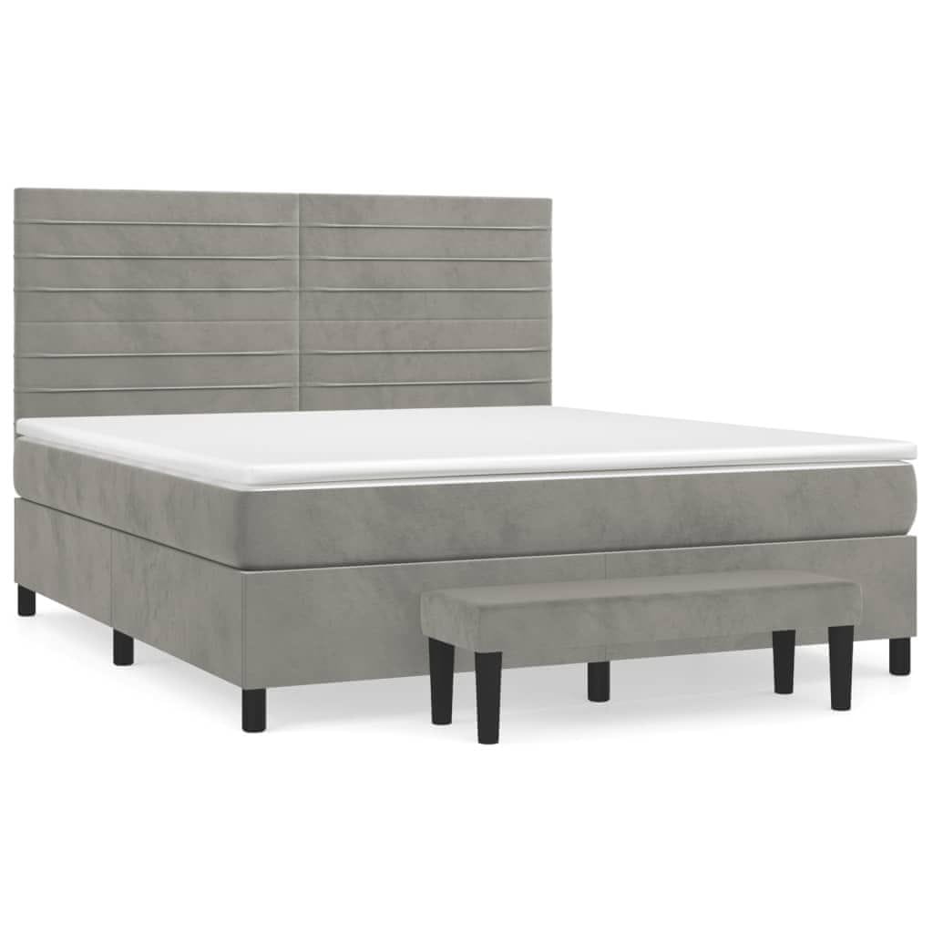 Vidaxl Box spring postelja z vzmetnico svetlo siva 180x200 cm žamet