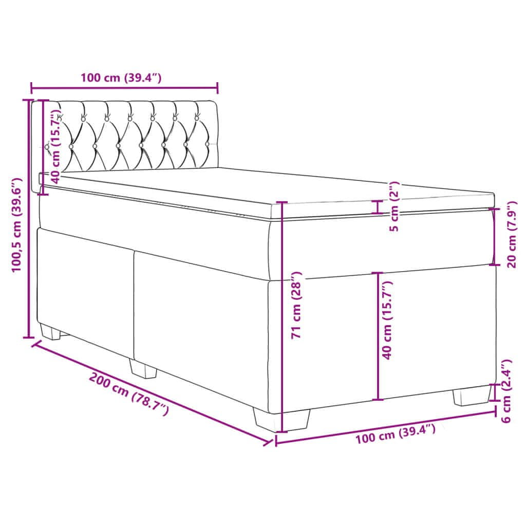 Vidaxl Box spring postelja z vzmetnico svetlo siva 100x200 cm žamet