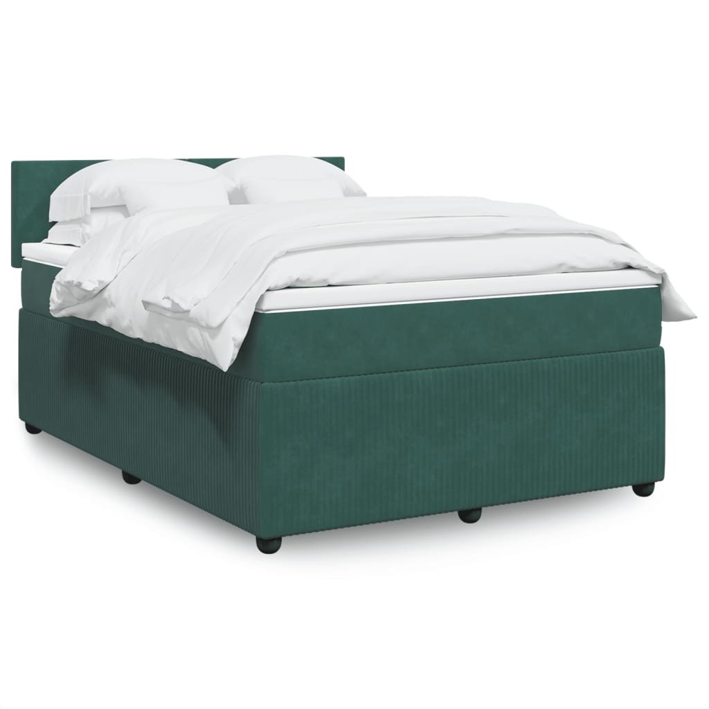 Vidaxl Box spring postelja z vzmetnico temno zelena 140x200 cm žamet