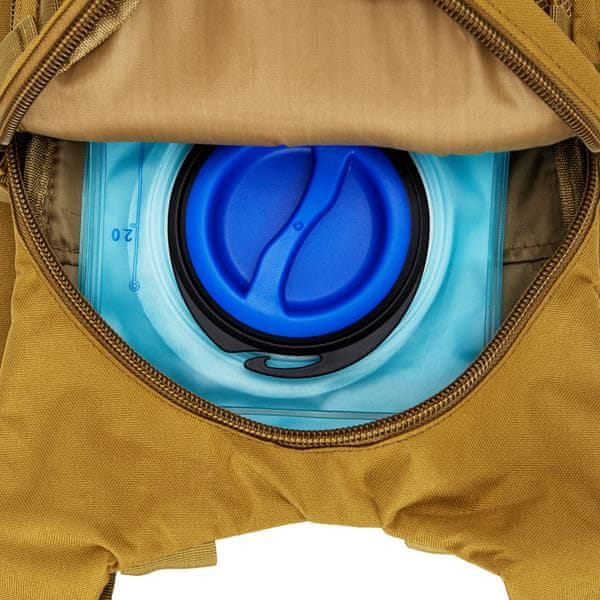 - Glavni predel z zadrgo ima dodatno pregrado in posebna držala za namestitev hidracijskega meha.