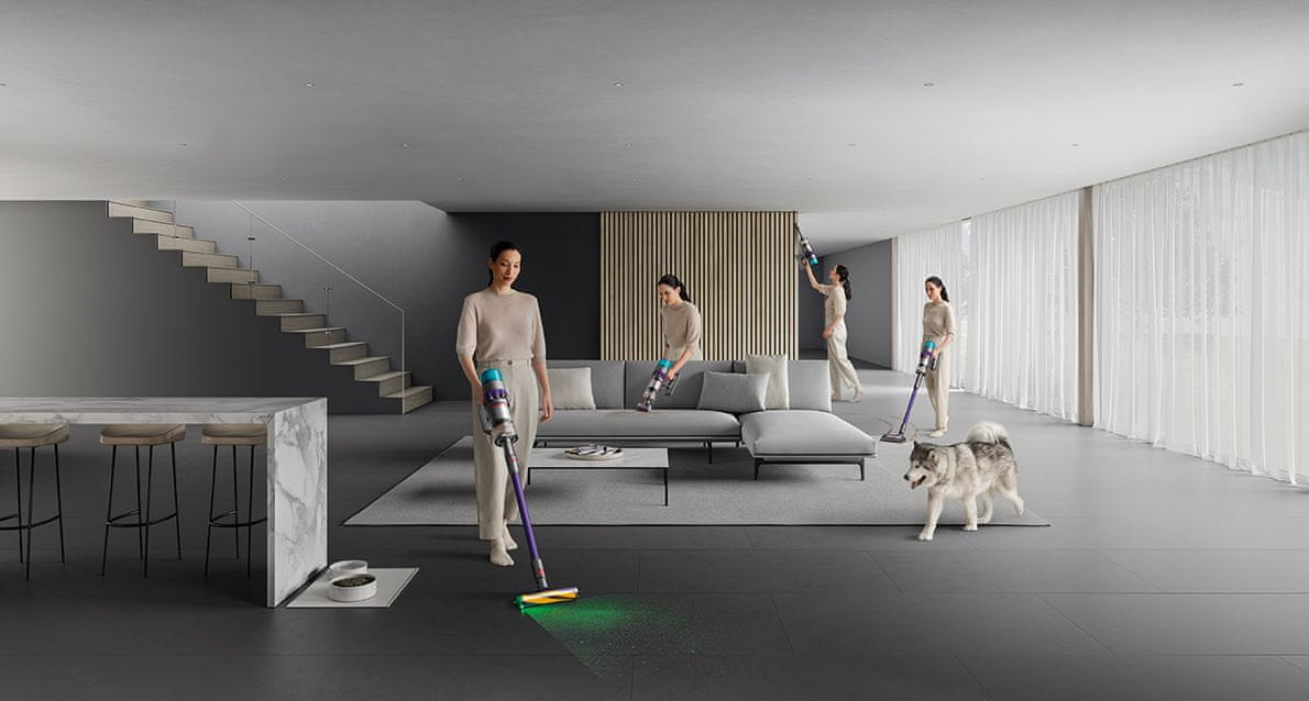 Sesalnik Dyson Gen5detectTM z najdaljšim časom delovanja doslej lahko temeljito očisti celoten dom. Je dovolj vsestranski za sesanje težko dostopnih mest pod kavčem, med stopnicami in visoko na policah.