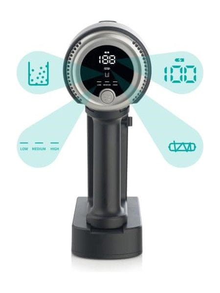 Moč delovanja sesalnika lahko nadzorujete preko pametnega osvetljenega zaslona, ki prikazuje stanje baterije in moč delovanja ter vas opozori, ko je koš za prah poln.