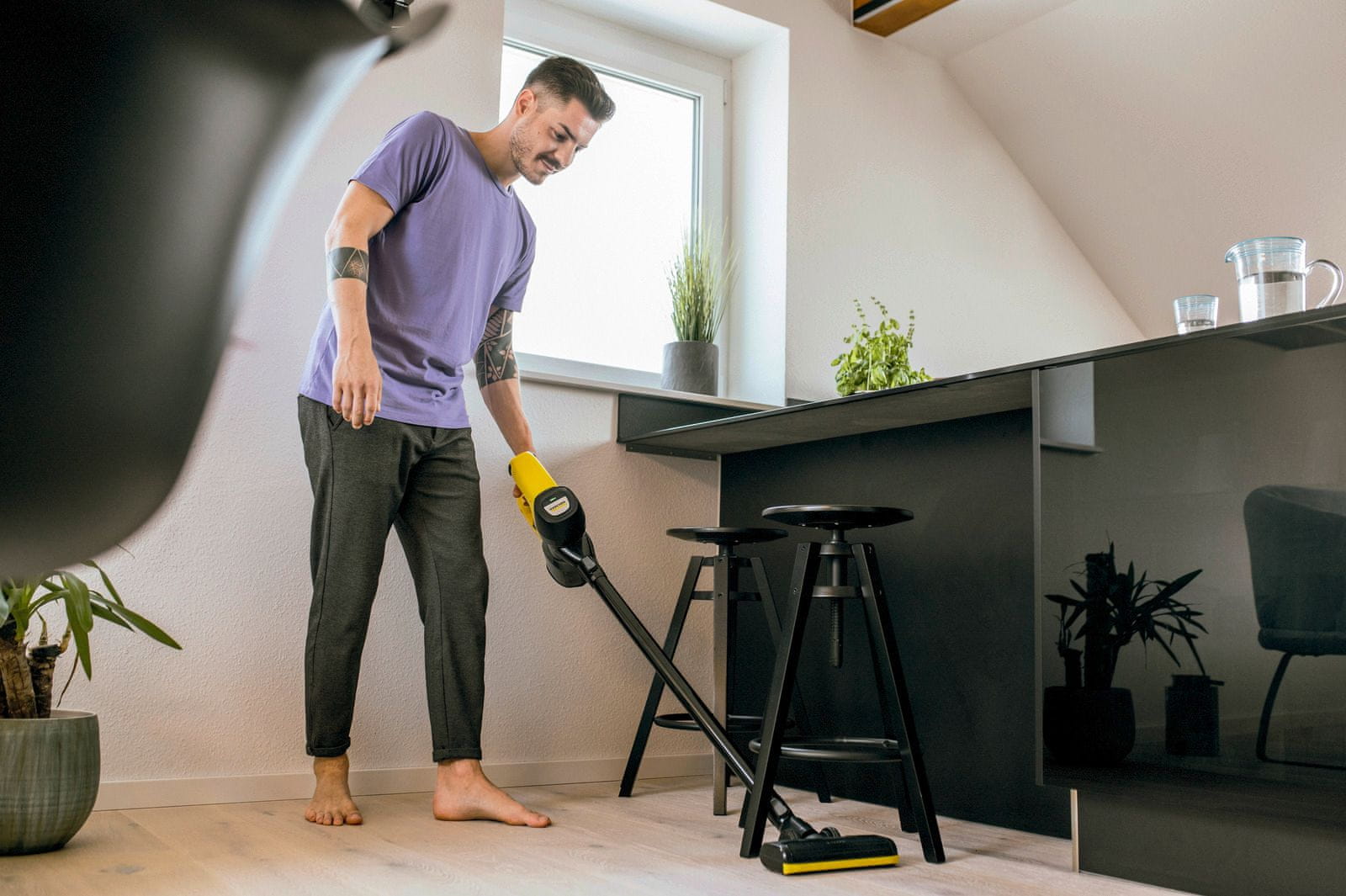 Največja svoboda gibanja in največje udobje. Pri brezžičnem ročnem sesalniku VC 4 Cordless myHome s časom delovanja do 30 minut, uporabniku ni treba za sabo vleči velike enote. S številnimi pametnimi funkcijami je sesanje užitek: praznjenje posode za prah z enim klikom, funkcija povečanja moči, tiho delovanje, ergonomična oblika in aktivna talna šoba za zanesljivo pobiranje umazanije na trdih tleh in preprogah. Priročna funkcija Power Lock zagotavlja, da med uporabo ni treba stalno pritiskati gumba za vklop. Njegova skrbno zasnovana oblika omogoča čiščenje tudi na težko dostopnih mestih, na primer ob kavču ali pod pohištvom.