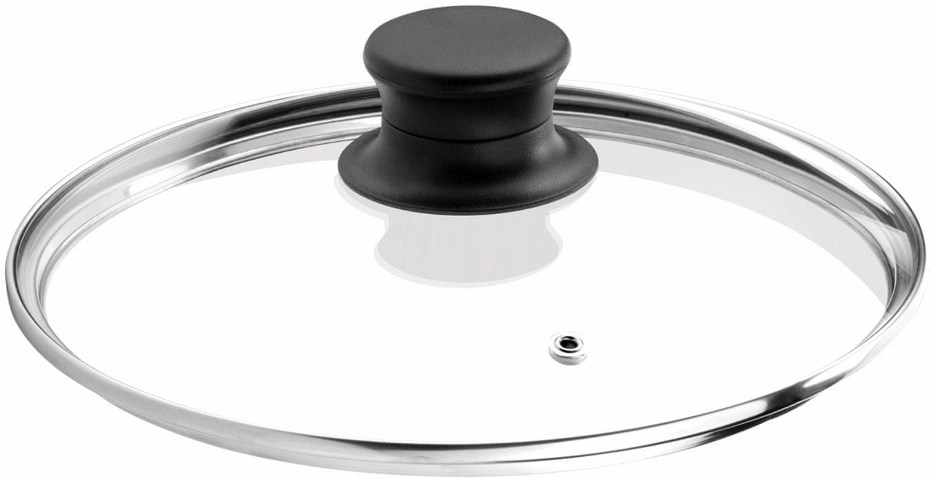 Kakovosten steklen pokrov s trpežnim plastičnim ročajem. Premer 30 cm.