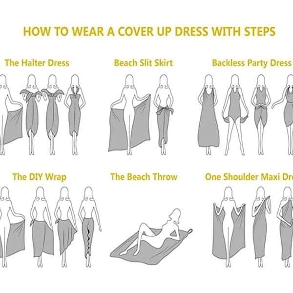 Ta obleka za na plažo se ponaša z vsestranskim krojem, ki je primeren za različne priložnosti, od izletov na plažo in poležavanja ob bazenu do zabav in vodnih parkov.