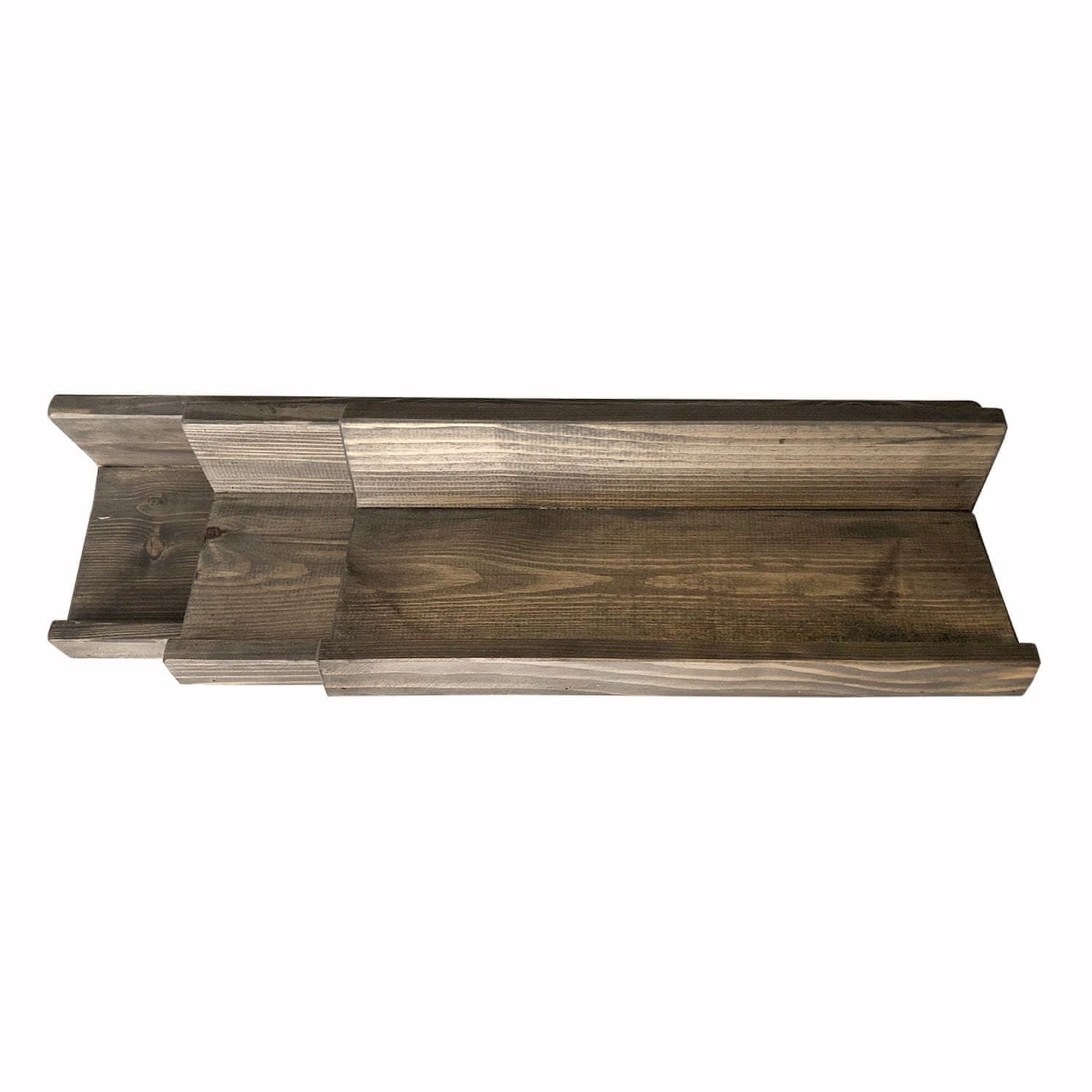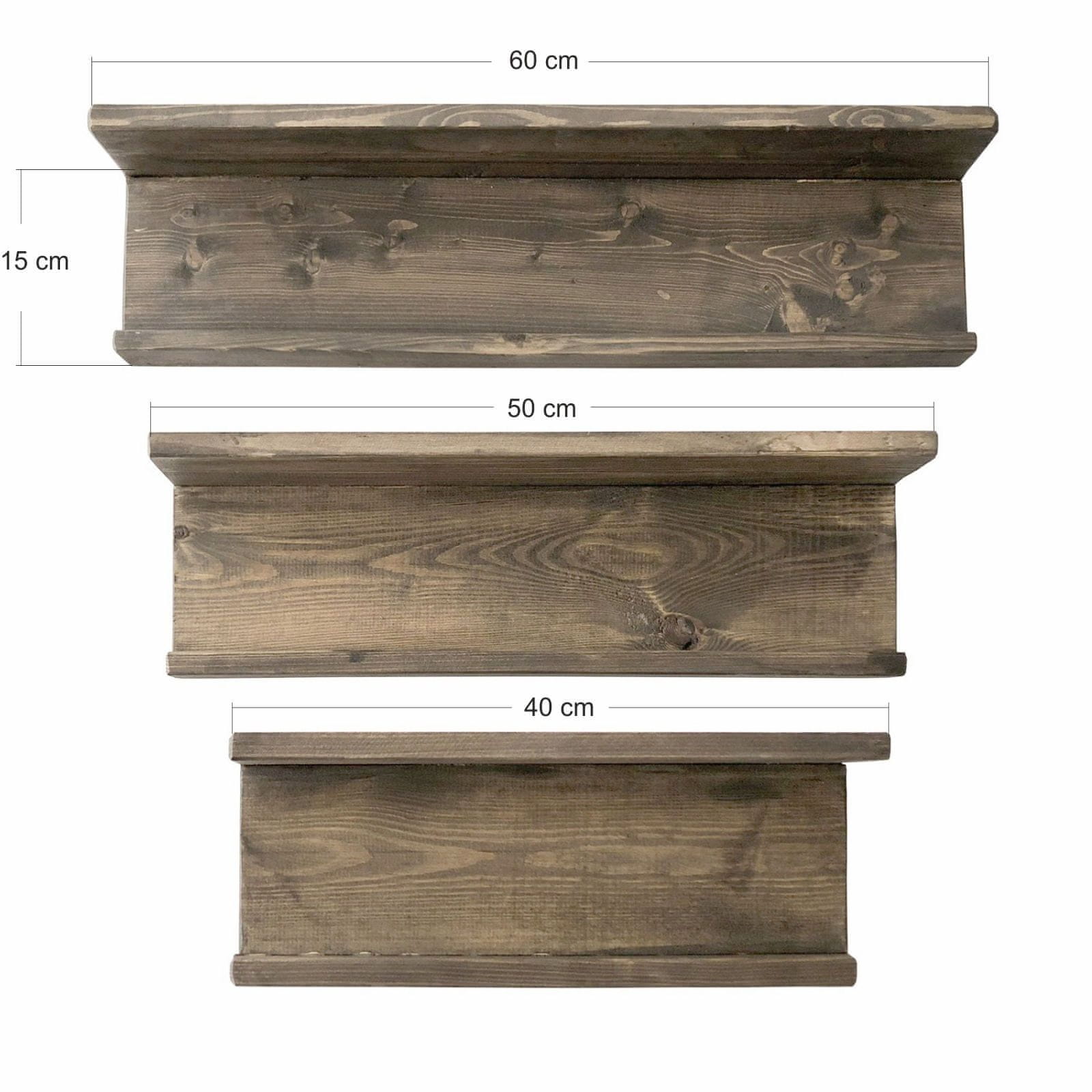 100 % MASIVNI LES Širina: 60 cm Višina: 15 cm Globina: 8 cm (1 kos) Širina: 50 cm Višina: 15 cm Globina: 8 cm (1 kos) Širina: 40 cm Višina: 15 cm Globina: 8 cm (1 kos) Lahko se pritrdi na steno
