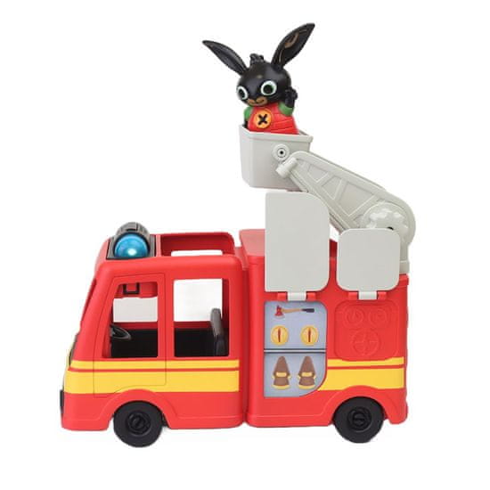Bingov gasilski avto se oglaša kot pravi gasilski avto. Prav tako bo utripajoča modra luč zelo dobro spremljala gasilsko igro vašega malega nergača. V kompletu s figurico BINGA.