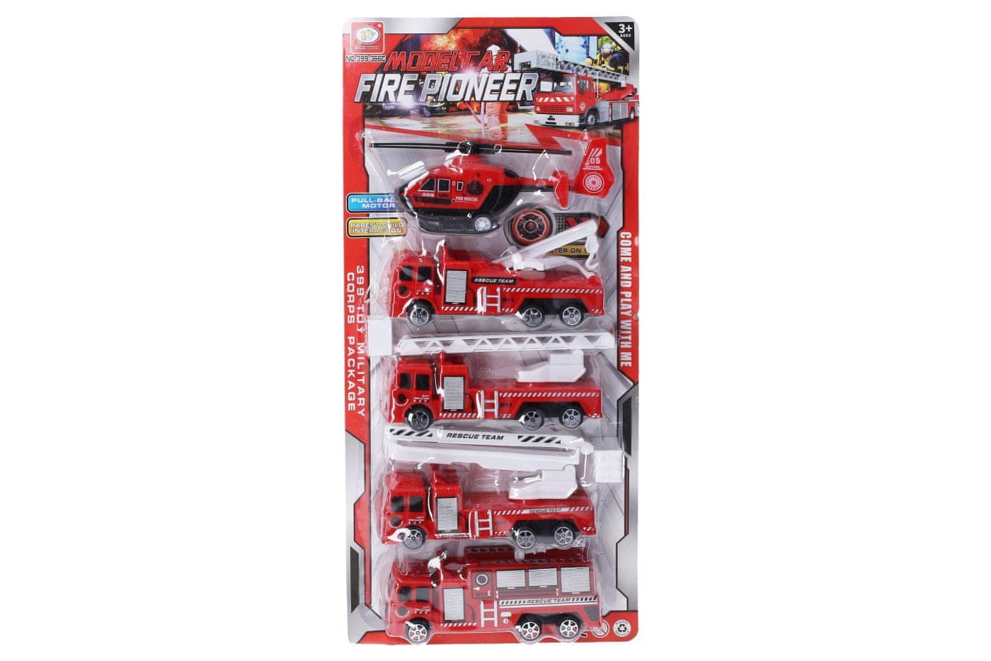 Hasični nabor. Za odbojna in prosta kolesa. Vključuje helikopter in 4 avtomobile. Velikost avtomobila 17 cm.