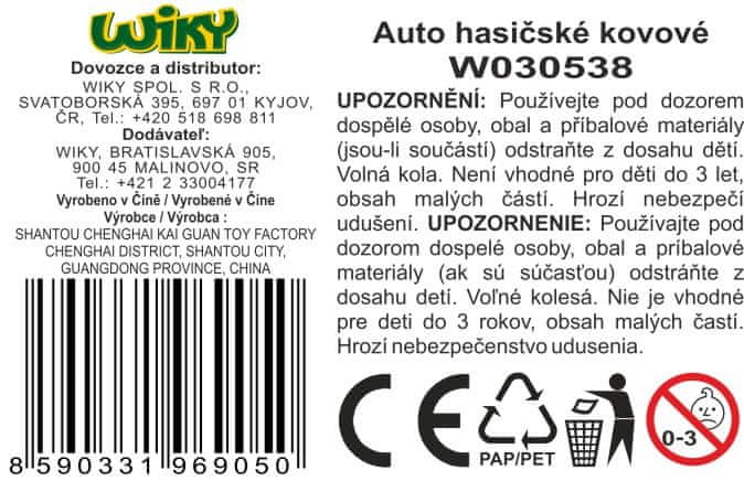 Kovinsko gasilsko vozilo. Velikost 7 cm. 6 različic.